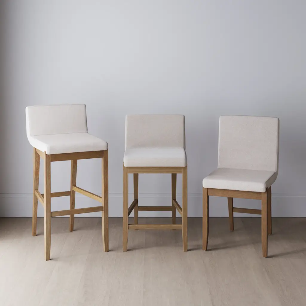 We loved our Gracie Bar Stool so much, we had to make a dining chair to match! Our modern Gracie Dining Chair features a thick, durable C-shaped cushion covered in natural flax material. Effortlessly elevate your dining room thanks to Gracie's exposed wood back and tapered legs in a wire brushed light brown finish. Gracie adds style to your dining room or breakfast nook with its clean modern lines and large size for extra comfort. Pizza, anyone?