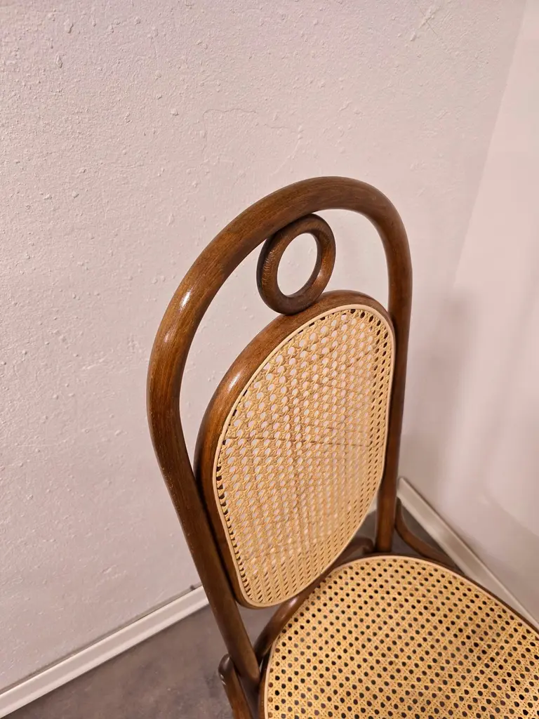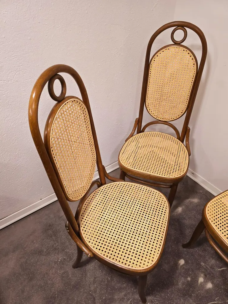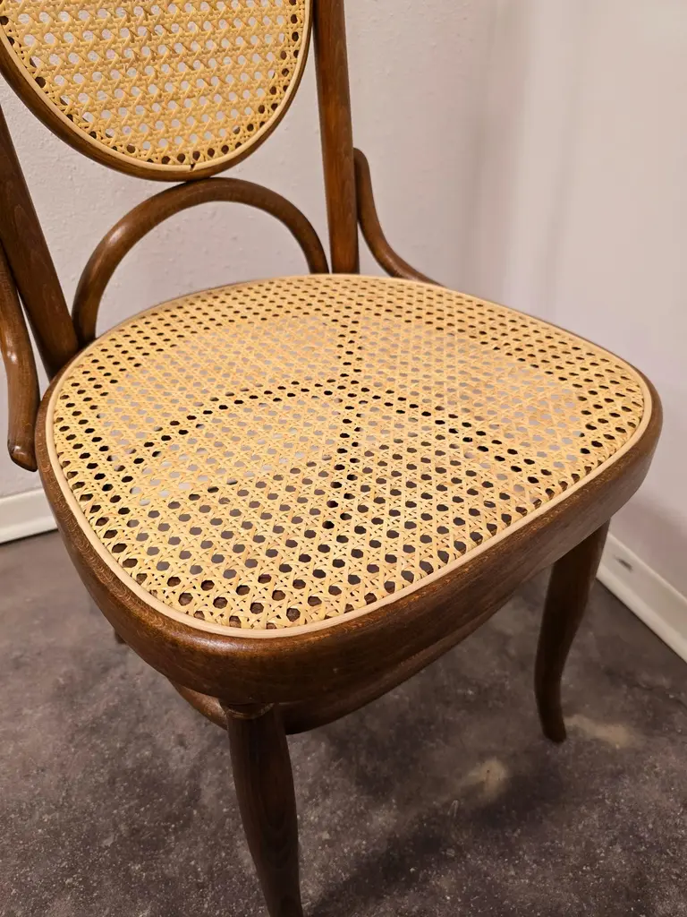 Bentwood cane back chairs N. 17.Period: 1960sMaterials: bentwood, caneColour: clear wood.Condition: Chairs were completely restored.Price is for one chair.