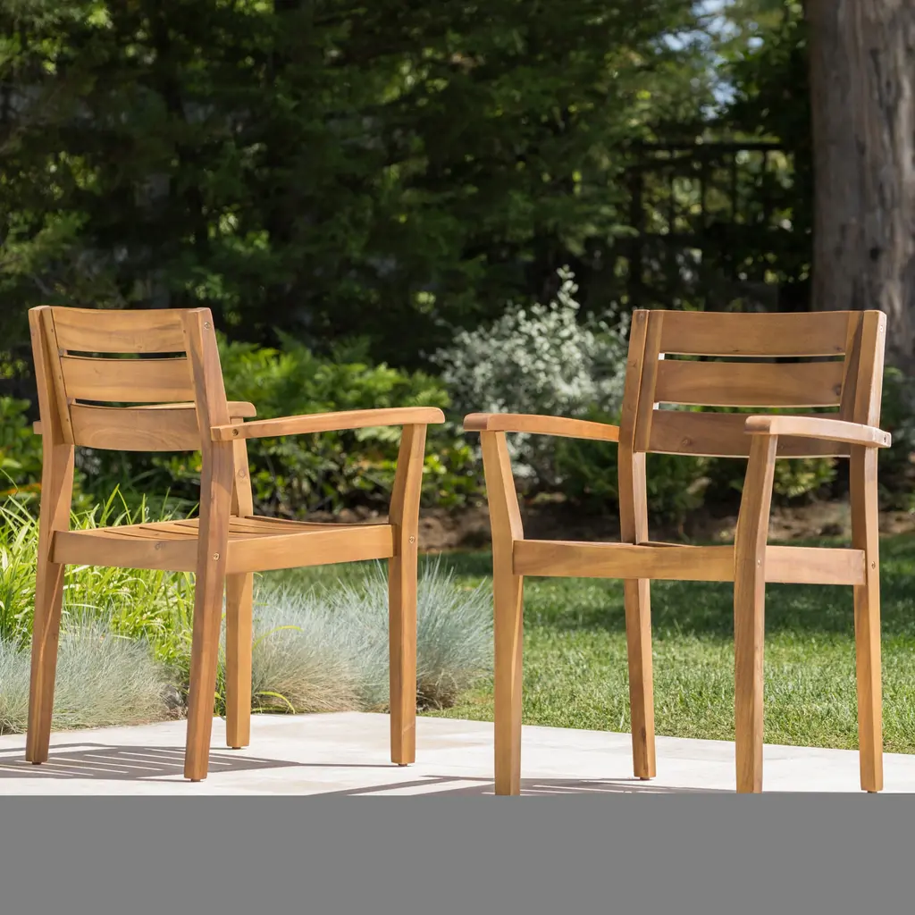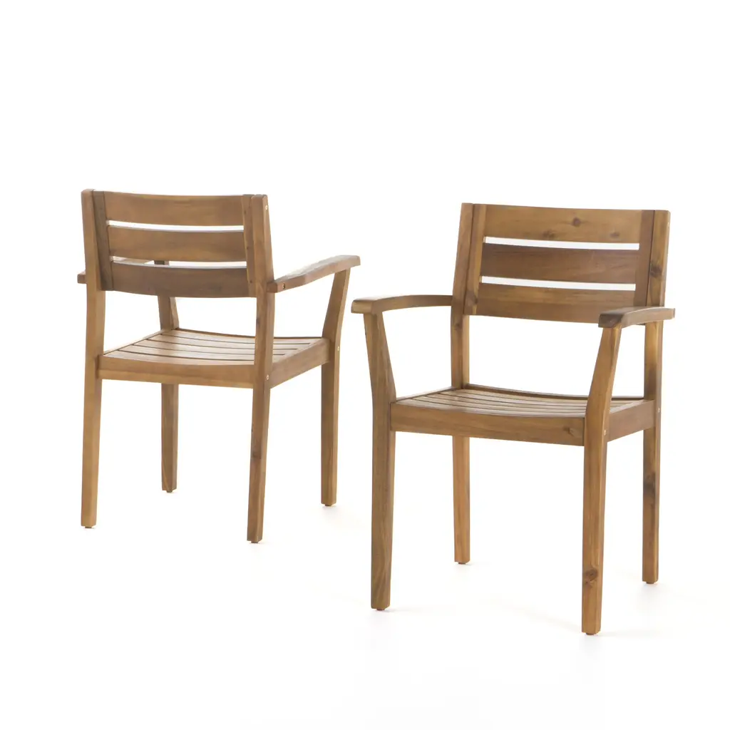 Dining Chairs Set Of 2,acacia Wood Patio Armchair,for Backyard And Poolside - Natural