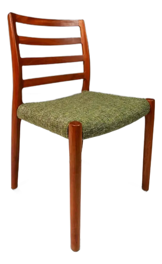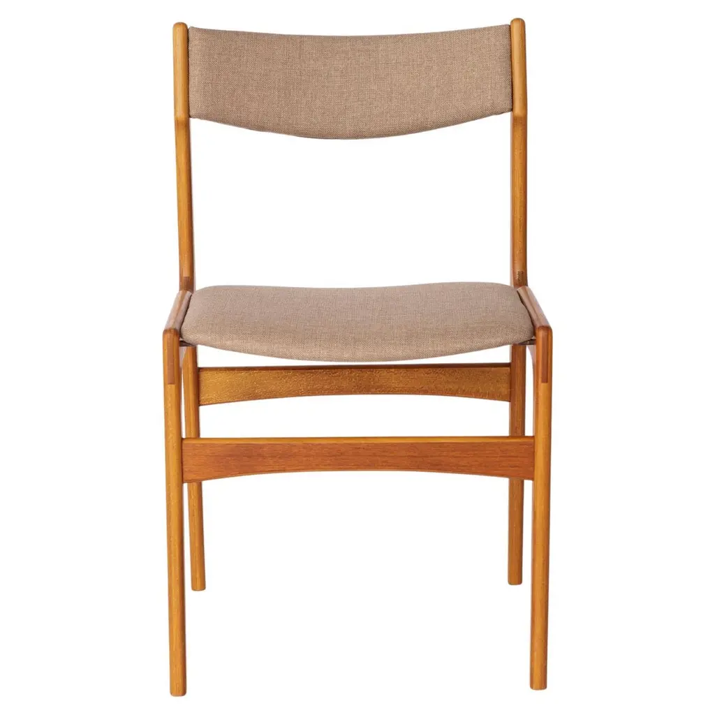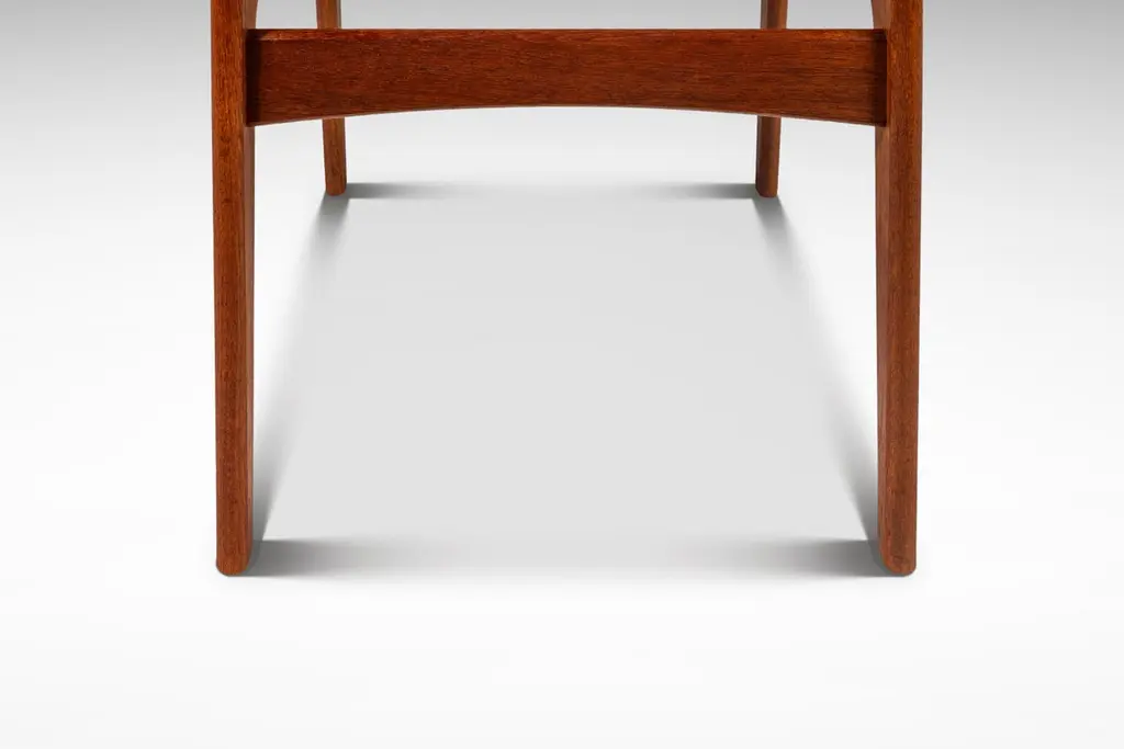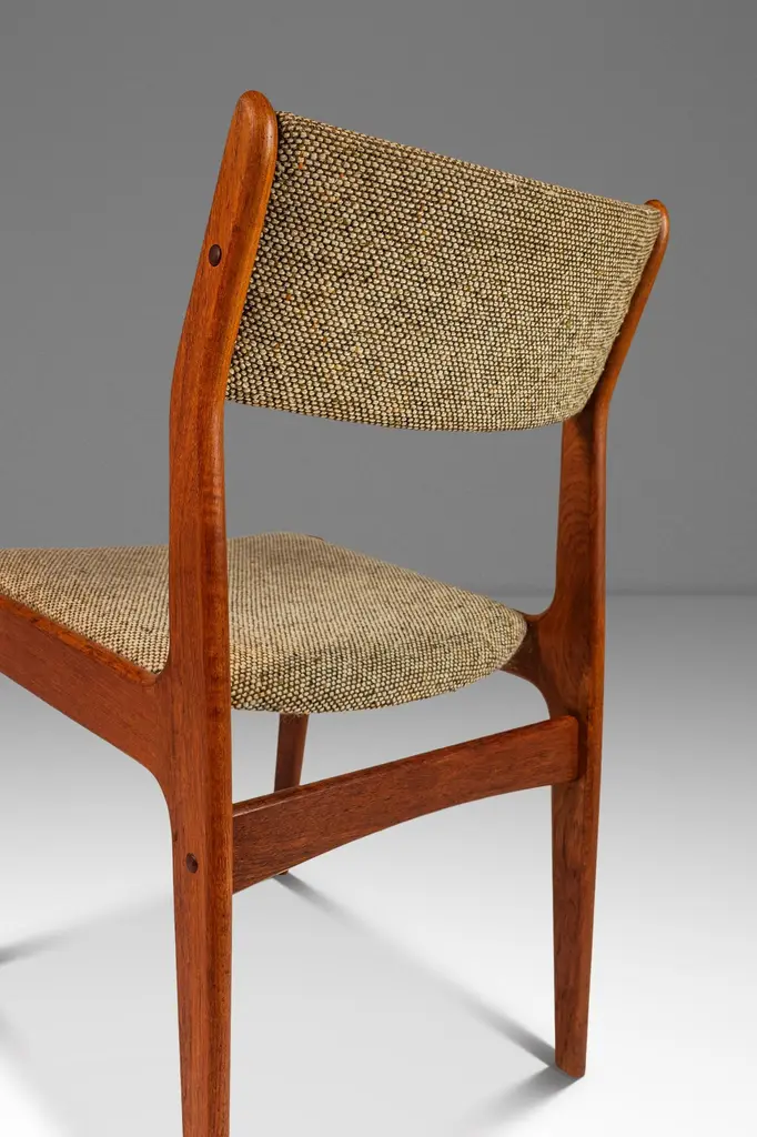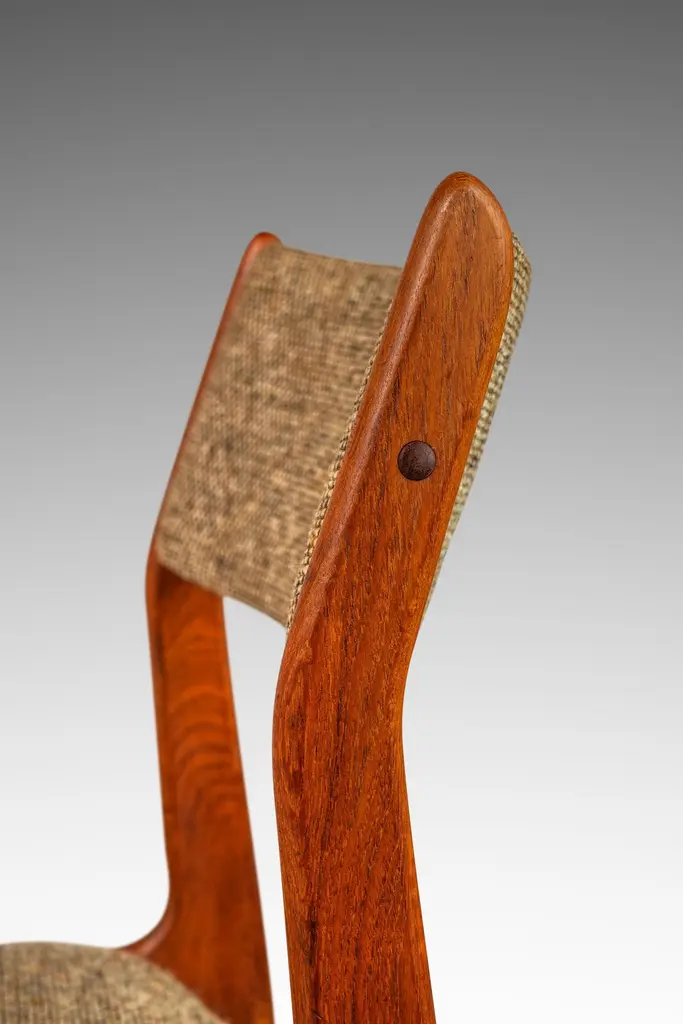 This refined Danish Mid-Century Modern dining or desk chair by Scandinavia Woodworks Co. exemplifies the minimalist elegance of 1970s Scandinavian design. Crafted from solid teak, the chair showcases the wood’s warm, honeyed tones and fine grain, with a gracefully curved backrest and tapered legs that lend an airy, lightweight silhouette. The original speckled gray fabric upholstery, with its subtle texture, complements the teak’s natural beauty while adding a tactile warmth to the piece. The ergonomic backrest and sturdy frame ensure both comfort and durability, making this chair a versatile addition to a dining space, home office, or collector’s curated interior. A testament to Denmark’s legacy of functional craftsmanship, this piece captures the timeless appeal of mid-century design.Scandinavia Woodworks Co. was a Danish furniture manufacturer active during the mid-20th century, known for producing high-quality pieces that embodied the principles of Danish Modern design. Operating primarily in the 1960s and 1970s, the company specialized in crafting furniture from premium woods like teak and oak, focusing on minimalist forms and functional beauty. While not as widely documented as larger firms like J.L. Møller, Scandinavia Woodworks contributed to the global popularity of Scandinavian design by creating durable, aesthetically refined pieces that remain cherished by collectors today.---Dimensions---Width: 19.5 in / 49.53 cmDepth: 21 in / 53.34 cmHeight: 32.5 in / 82.55 cmSeat Height: 18 in / 45.72 cmThis elegant desk / side chair is in 100% original, vintage condition. The solid Burmese teak frame shows only minor nicks and light scratches (the worst of which can be seen in the detail photos provided) but shows no stains, gouges or cracks whatsoever and the teak woodgrains are absolutely stunning in natural light.The original fabric, in a neutral oatmeal, heavy-knit polyester and cotton blend shows only minor discoloration on the seat as well as a thin strip of what appears to be discoloration but is actually a strand of darker thread original to the upholstery (please view in the detail photos provided).This chair is incredibly comfortable, structurally sound and ready for a lifetime more of use. Please view all photos and video provided for details on this chairs current condition. We're limited on the amount of media we can post so additional photos and videos are available upon request.