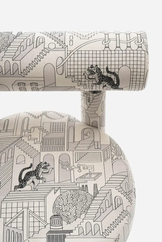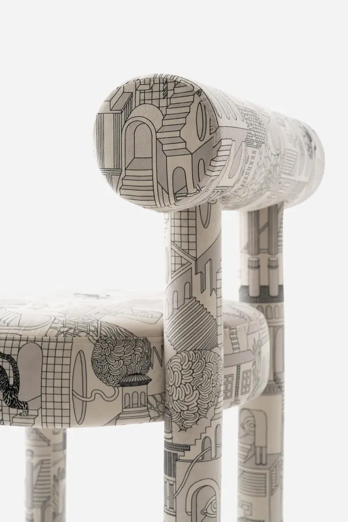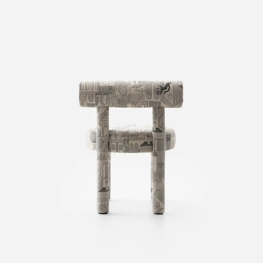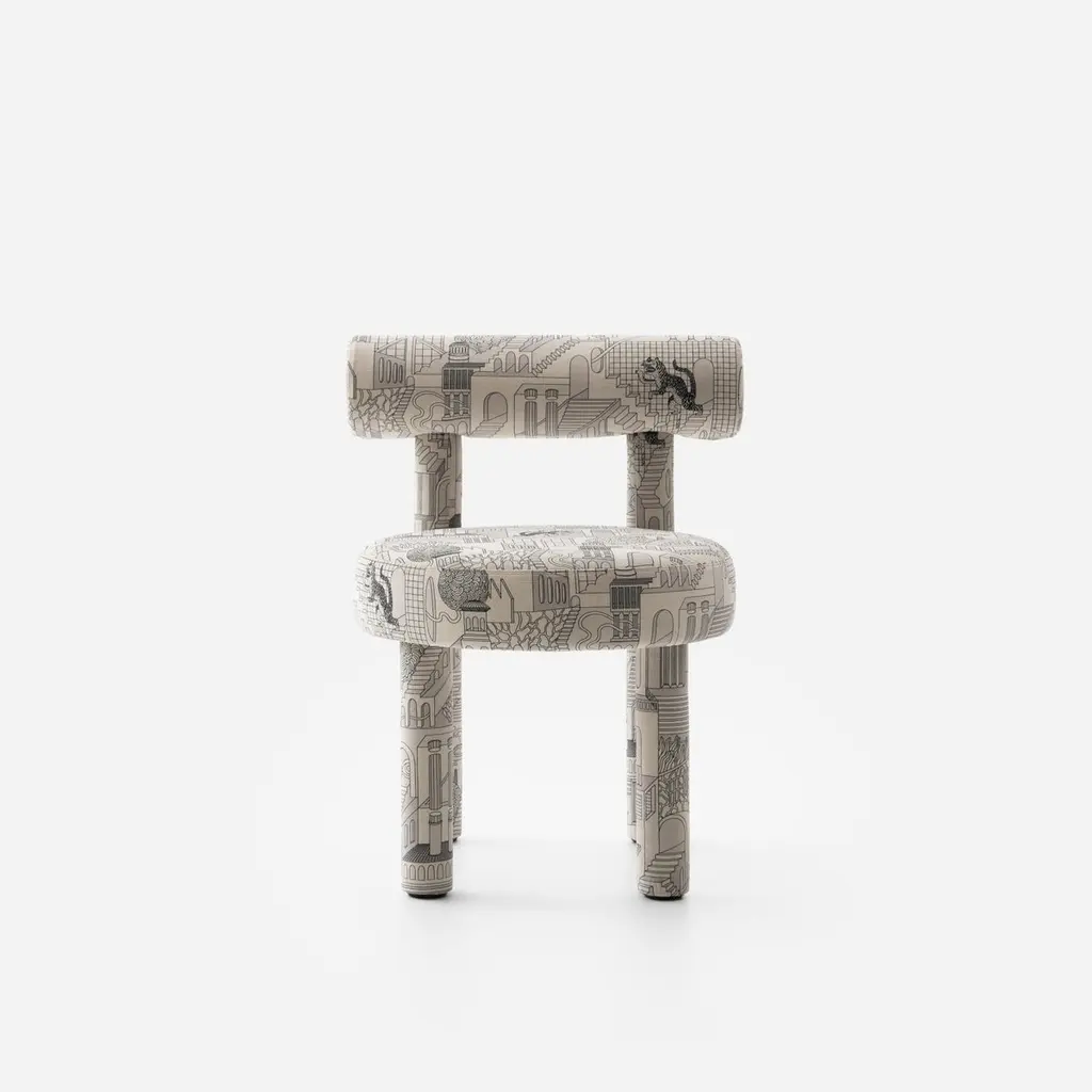 NOOM X Patience & Gough Present a Bold Collaboration Bridging Gropius chair, Textile, and NFT Art.In a bold cross-disciplinary collaboration with British design studio Patience & Gough, and Ukrainian artist Magister of Magic (Yevheniia Vynokurova) have unveiled a special edition collection that intertwines digital NFT art seamlessly into high-end furniture and textile design.Merging handcrafted Gropius Chair with digitally inspired textile Penrose Prowl 'NAKED’ from Patience & Gough, created from recycled plastic bottles. It showcases the evolving role of digital art in physical interiors while celebrating the power of storytelling through design.Noom furniture collection is dedicated to the 100th anniversary of the founding of the Bauhaus School in Germany. Ideas of functionalism and conciseness, the combination of craft and art, buildings and objects formed by a composition of simple geometric shapes, are still relevant. The designer has “gathered” the shape of this chair from the cylinders.All products in the collection are called by names of famous modernist artists and architects.Designer: Kateryna SokolovaMaterials: Textile, foam rubber, wood, plywoodFabrics: Available in a wide range of fabrics on request. Color Scheme: CS1, fully upholsteredDimensions: H 74 cm x W 57 cm x D 57 cm Seat height - 47 cm