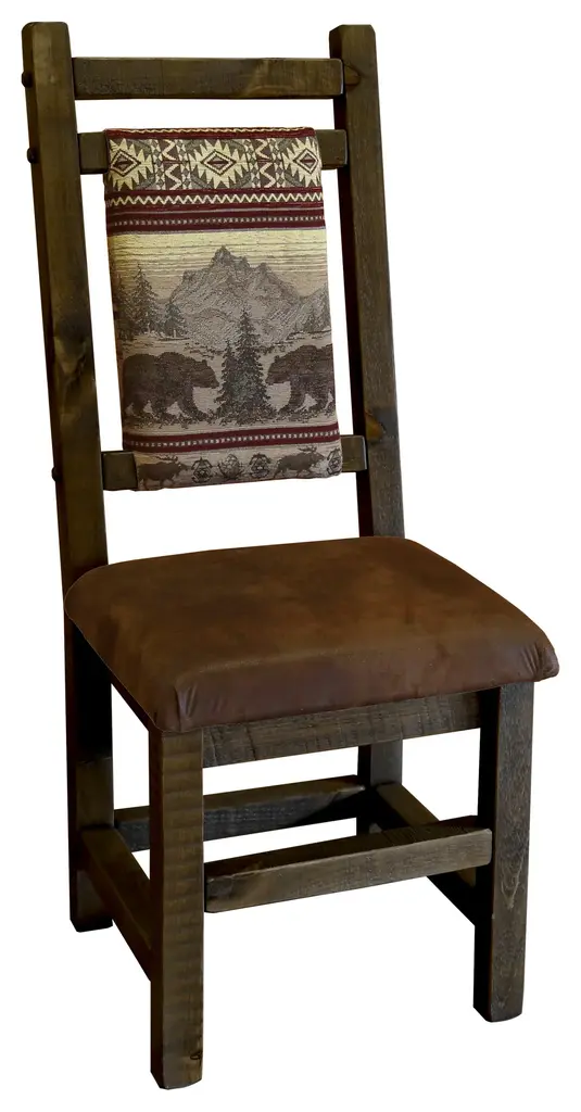 Dining Room Chair With Upholstered Seat And Back, Driftwood, Bear Run And Palomino Tobacco
