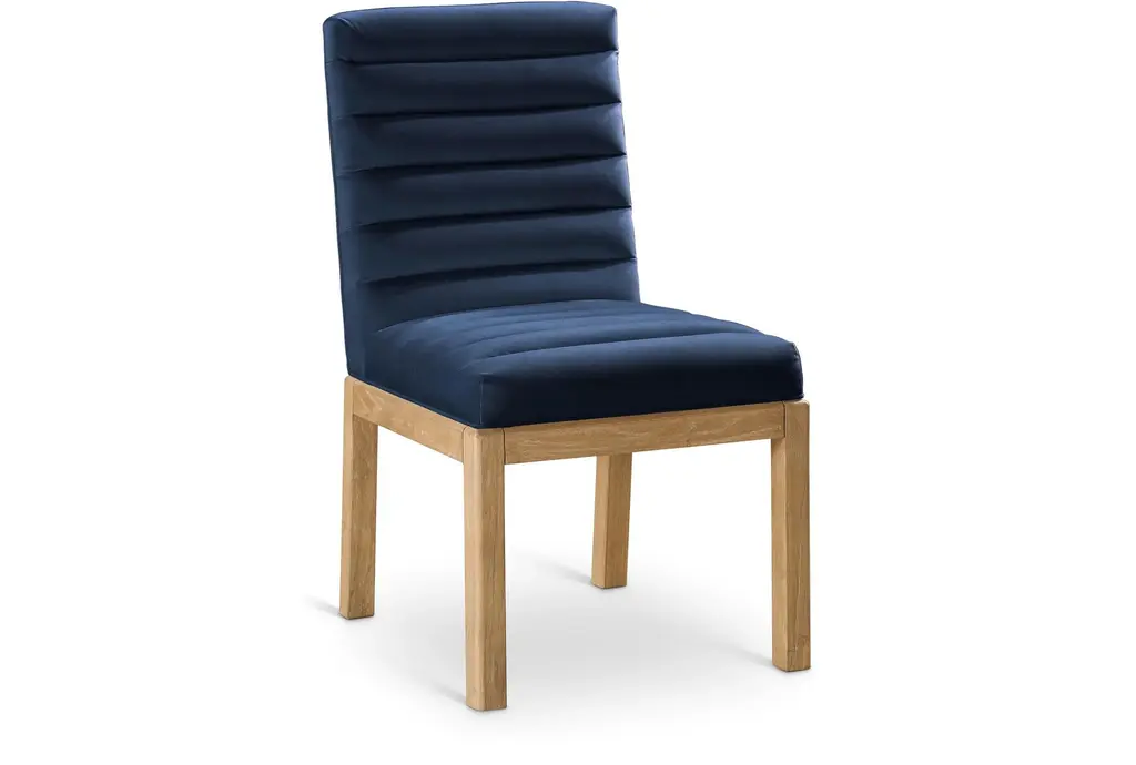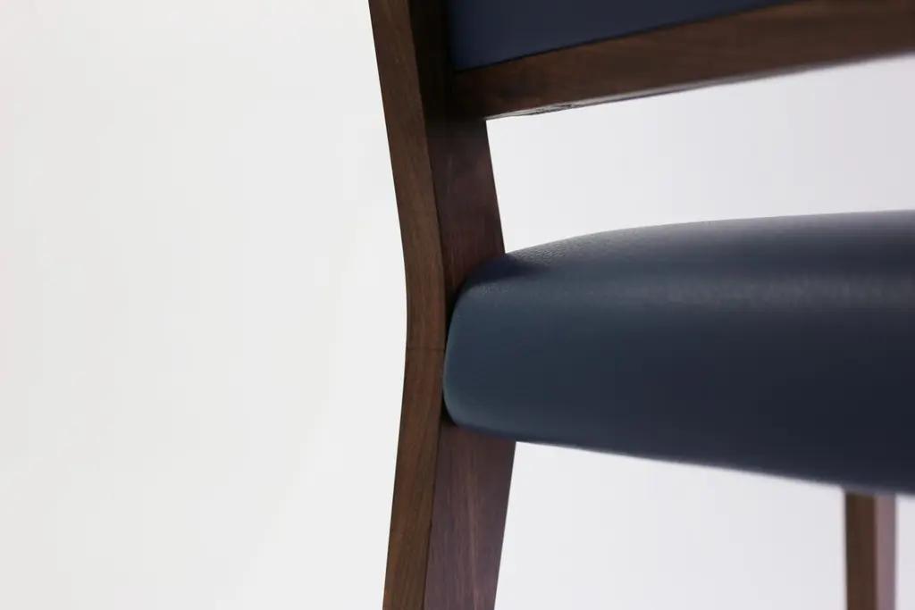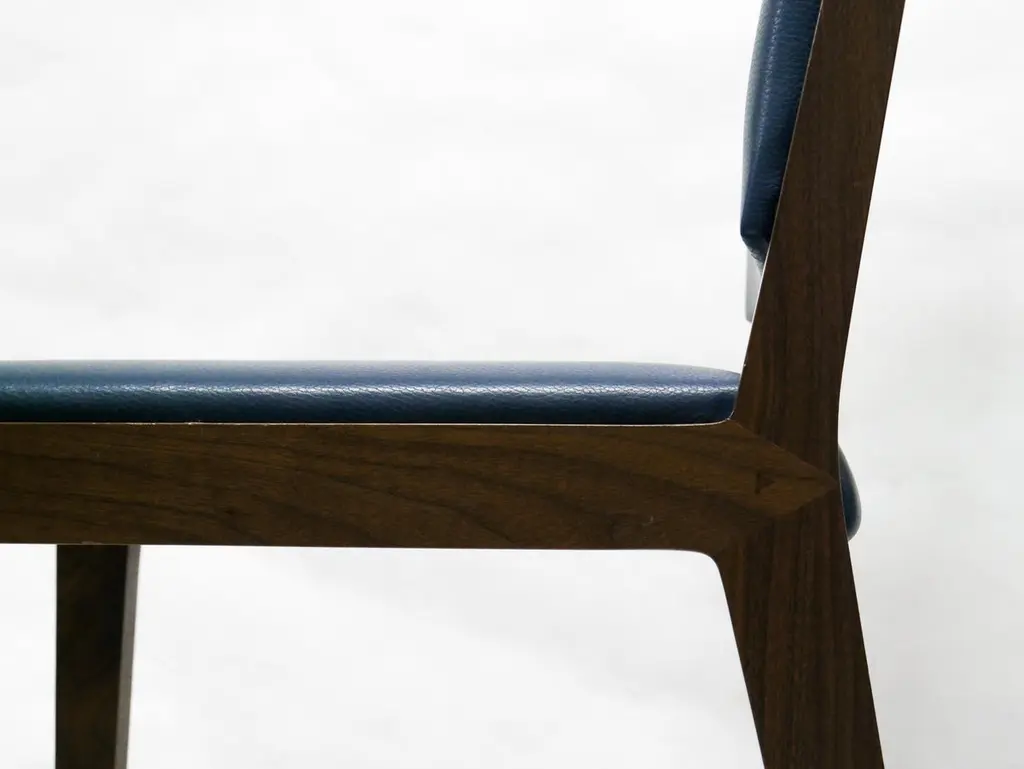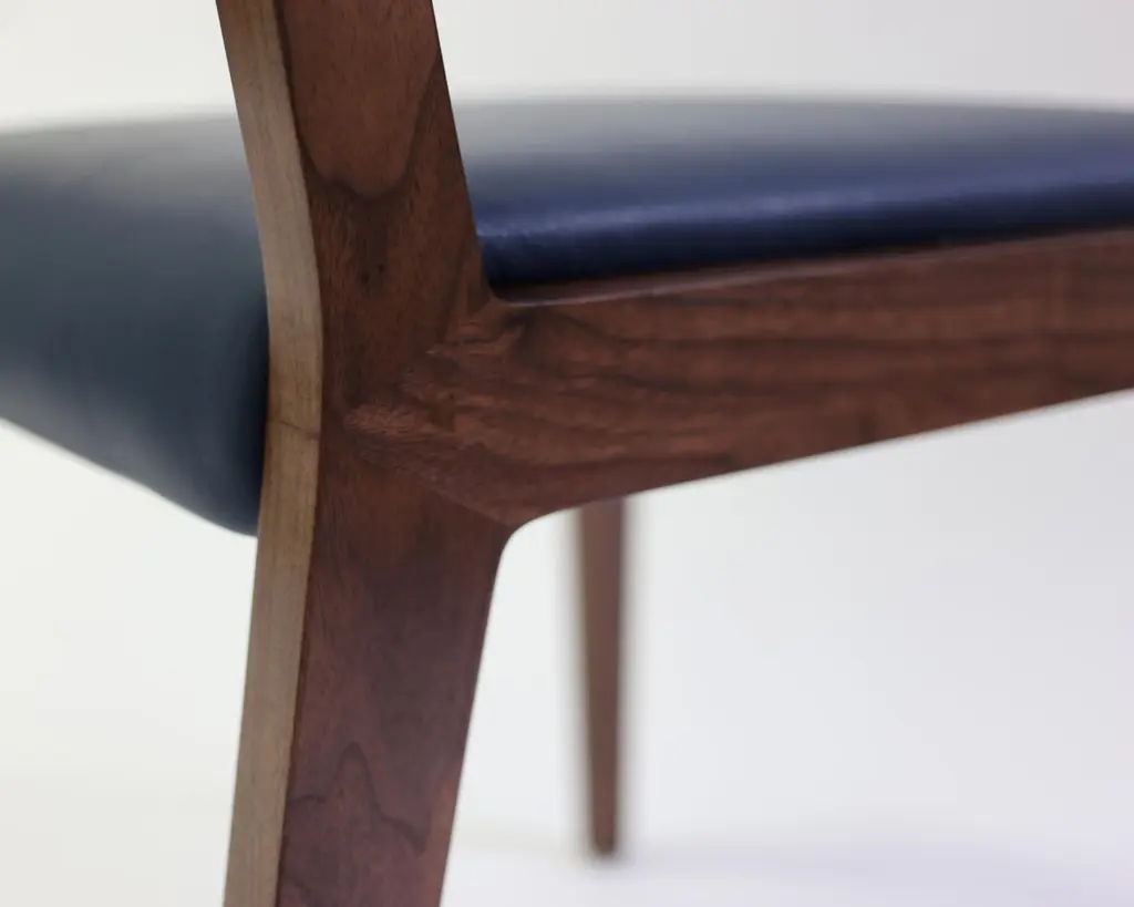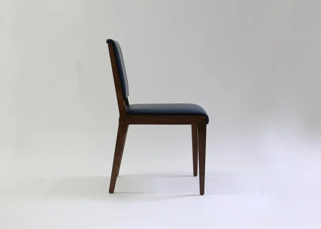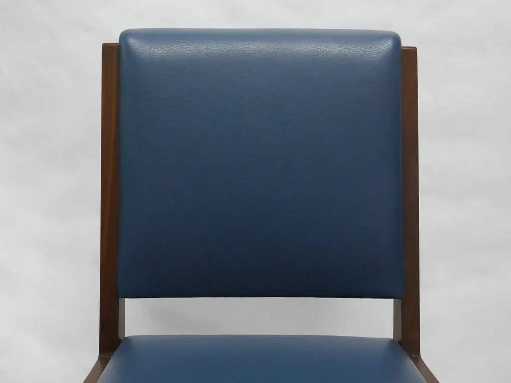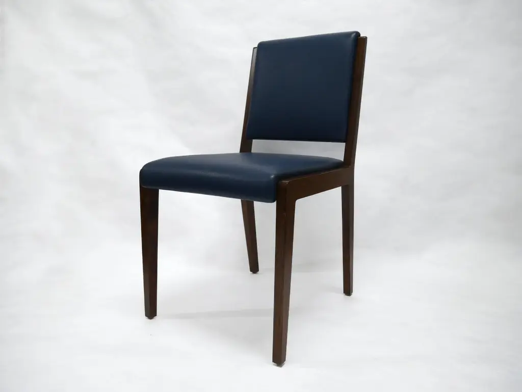 Dining Sidechair With In Blue Leather With Mahogany Wood Frame