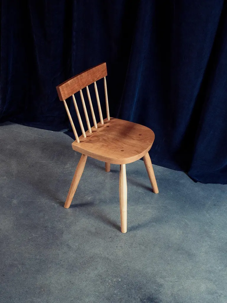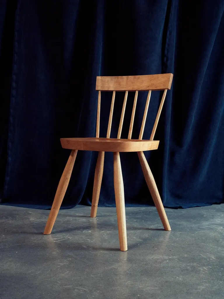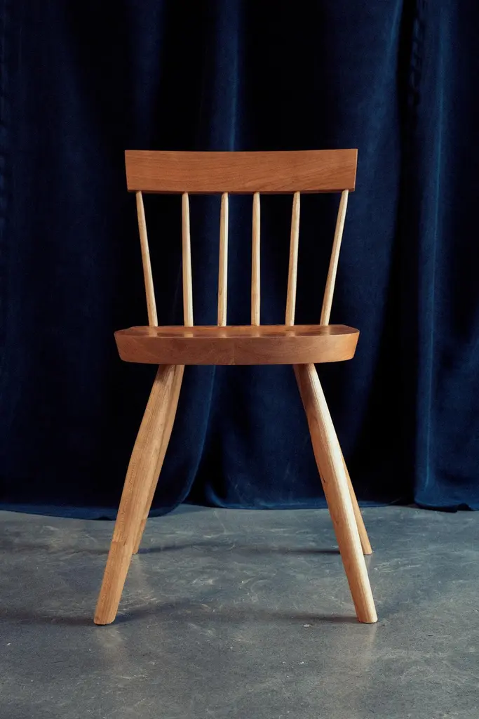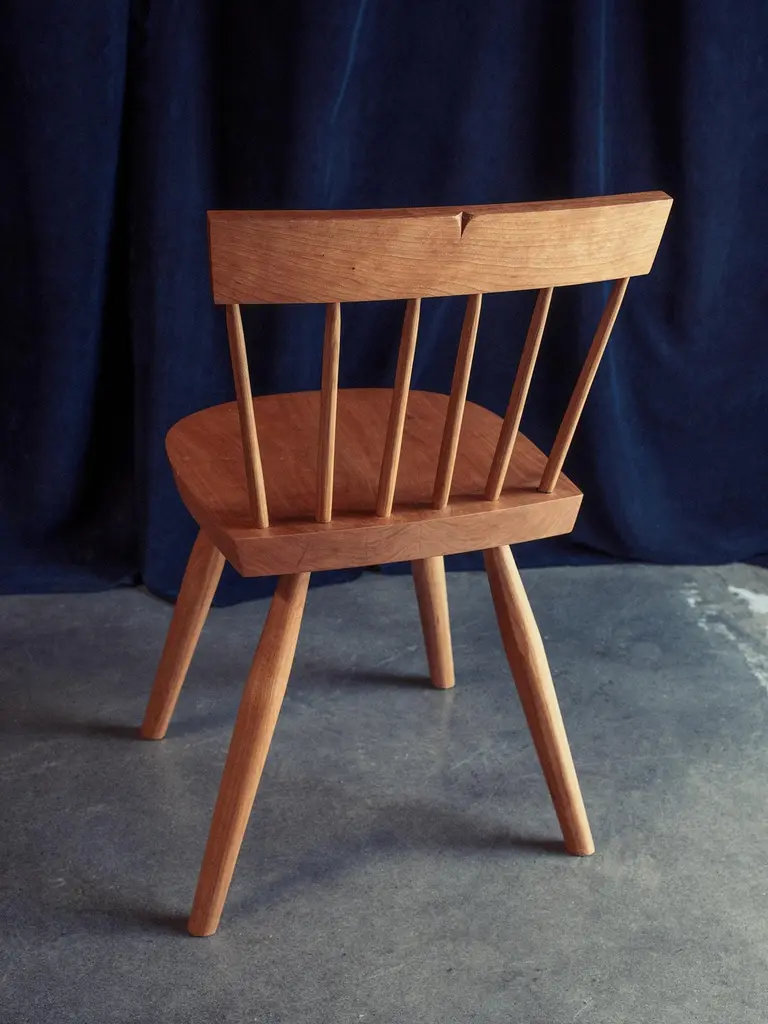Dinner Chair by Nick SugiharaDimensions: D 40.64 x W 40.64 x H 80 cm.Materials: Oiled cherry.Available in cherry, oak, ash, mahogany, and walnut. Please contact us.An elegant and softspoken dining chair that draws inspiration from a long history of European and American vernacular chairmaking. Built using traditional techniques that ensure longevity and strength. The spindles and legs are tapered and rounded using hand tools, leaving a smooth but textured surface. Hand-rubbed oil finish.Sugihara Fine Furniture is a small furniture and interior studio based in San Diego, CA. We specialize in solid wood heirloom pieces, combining traditional techniques with a contemporary design sensibility.Each piece is built one at a time utilizing both hand and power tools. Everything you see is available in a variety of wood species if you have something specific in mind. We consider each piece one-of-a-kind because of the variable nature of the timber we use and the individual attention it demands.The finish we use is a penetrating oil finish that is non-toxic and food-safe once fully cured.