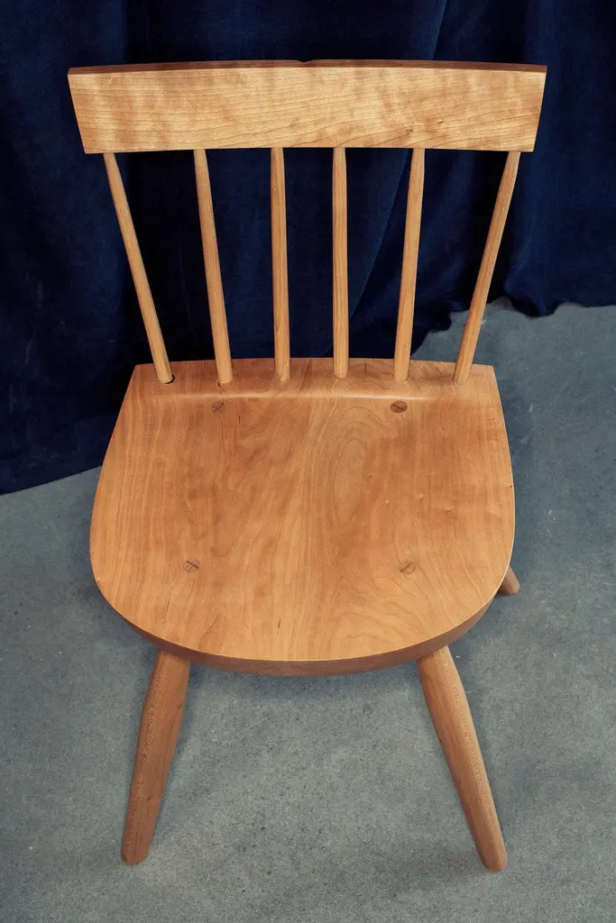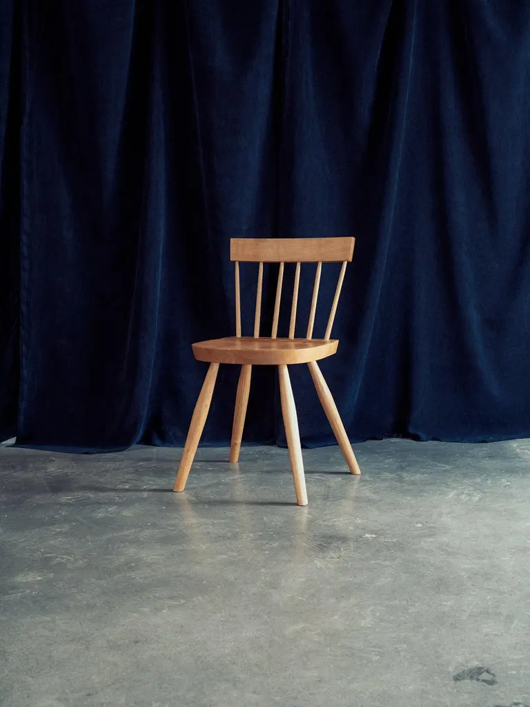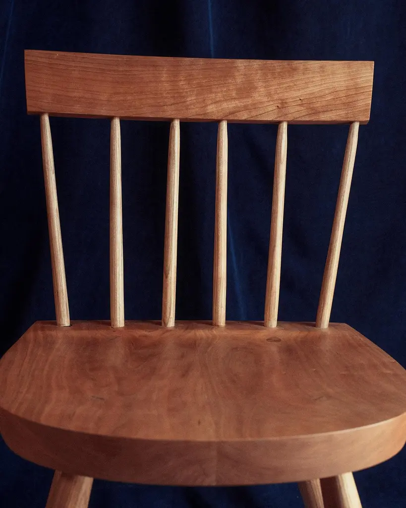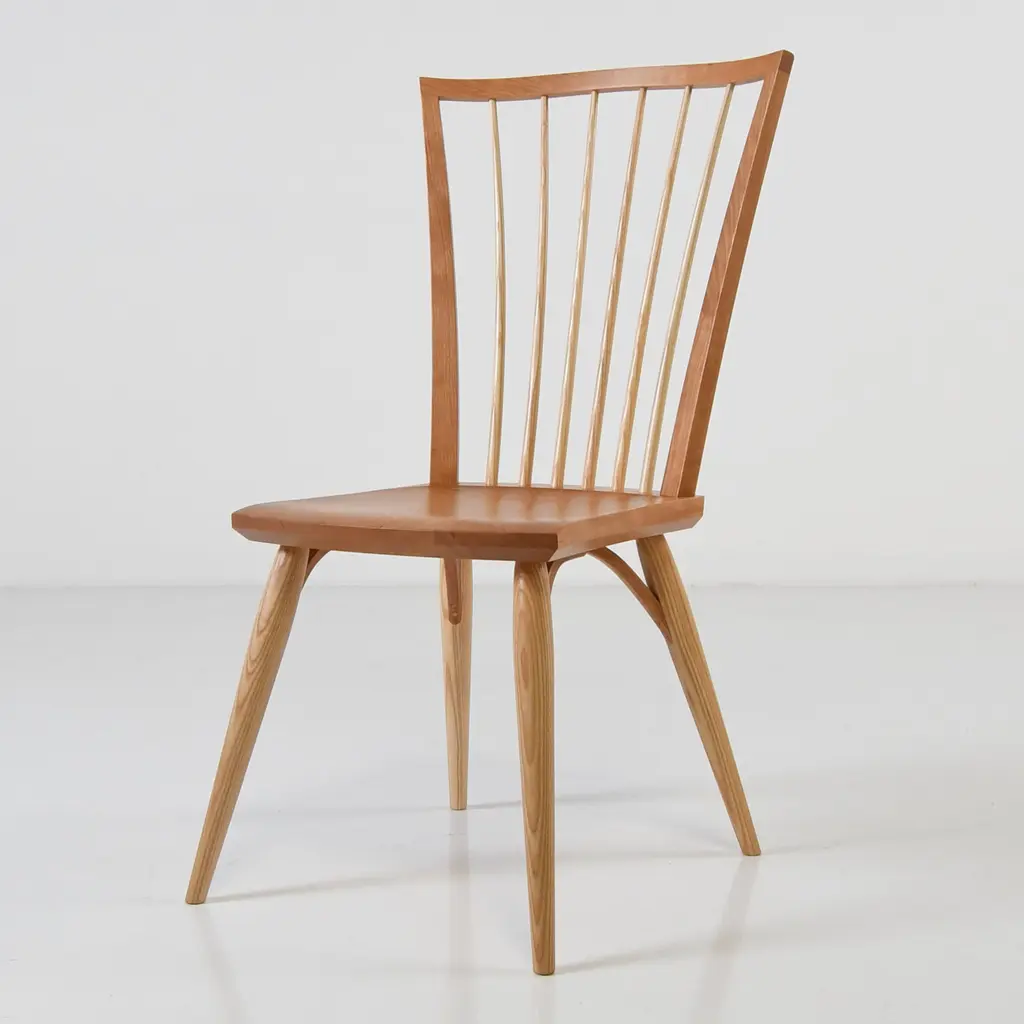 Dinner Chair by Nick SugiharaDimensions: D 40.64 x W 40.64 x H 80 cm.Materials: Oiled cherry.Available in cherry, oak, ash, mahogany, and walnut. Please contact us.An elegant and softspoken dining chair that draws inspiration from a long history of European and American vernacular chairmaking. Built using traditional techniques that ensure longevity and strength. The spindles and legs are tapered and rounded using hand tools, leaving a smooth but textured surface. Hand-rubbed oil finish.Sugihara Fine Furniture is a small furniture and interior studio based in San Diego, CA. We specialize in solid wood heirloom pieces, combining traditional techniques with a contemporary design sensibility.Each piece is built one at a time utilizing both hand and power tools. Everything you see is available in a variety of wood species if you have something specific in mind. We consider each piece one-of-a-kind because of the variable nature of the timber we use and the individual attention it demands.The finish we use is a penetrating oil finish that is non-toxic and food-safe once fully cured.
