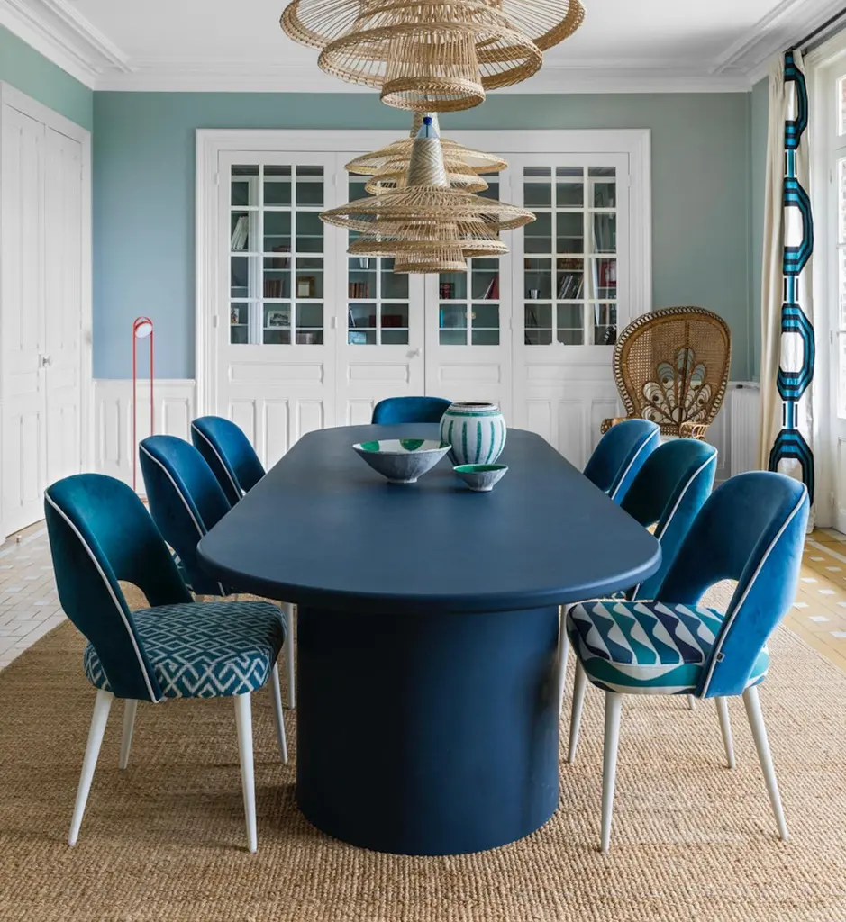 Dinning Chair Ava Brass Fittings Natural Seat And Textured Blue Backrest