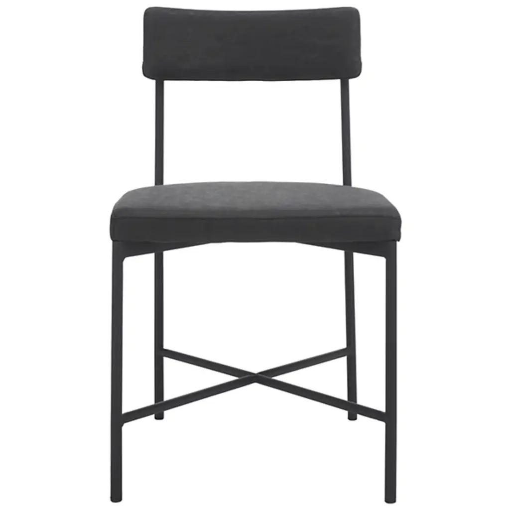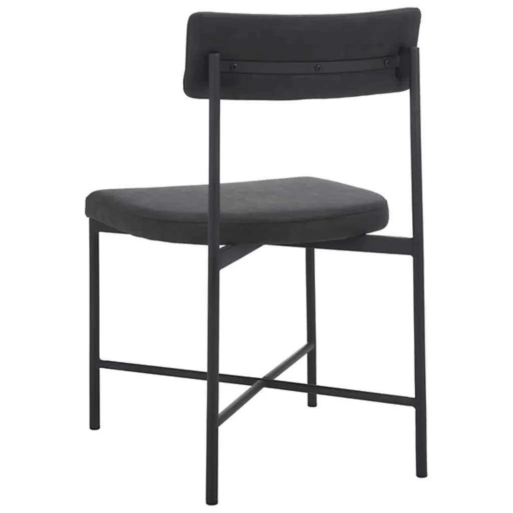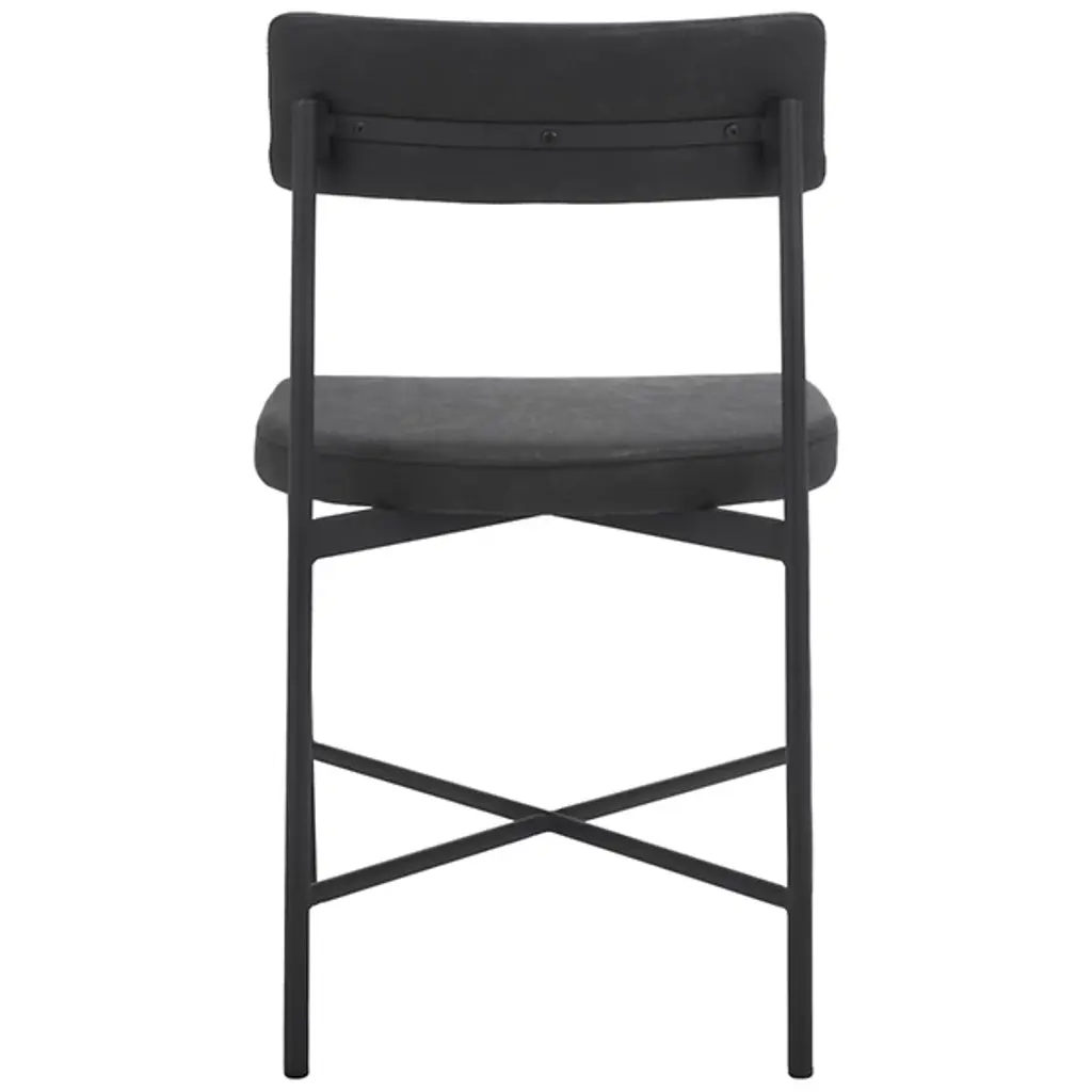 The Dionira Dining Chair, Set of 2 from Alder & Ore, invites retro charm into your living space decor. Crafted with a clean-lined black iron frame, it exudes a comfortable Mid-Century Modern feel with smooth leather seats, making it the coveted seat at the table. These chairs are designed to elevate your dining experience, with their curving seats and backs softening the otherwise angular lines. These stylish and comfortable chairs effortlessly combine form and function.