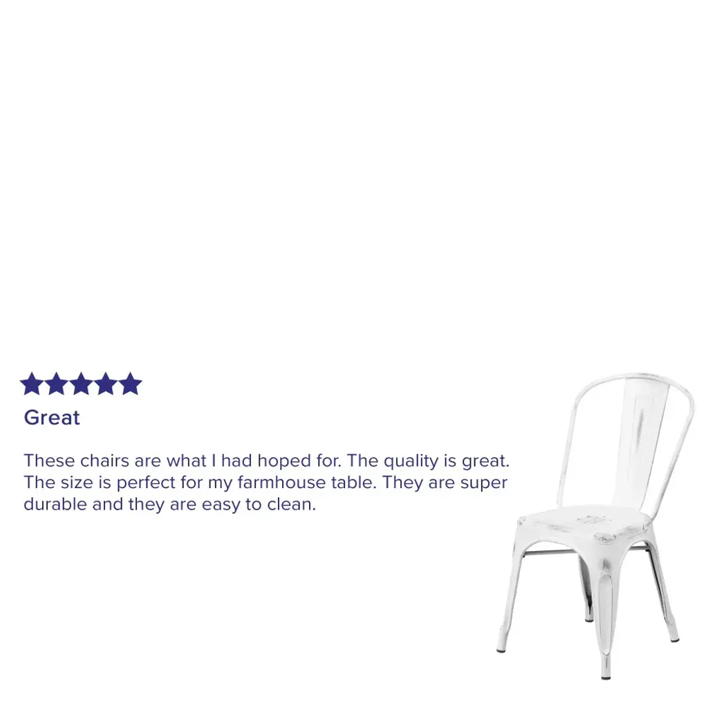 Distressed Metal Indoor/ Outdoor Stackable Chair - White