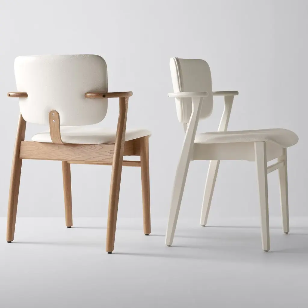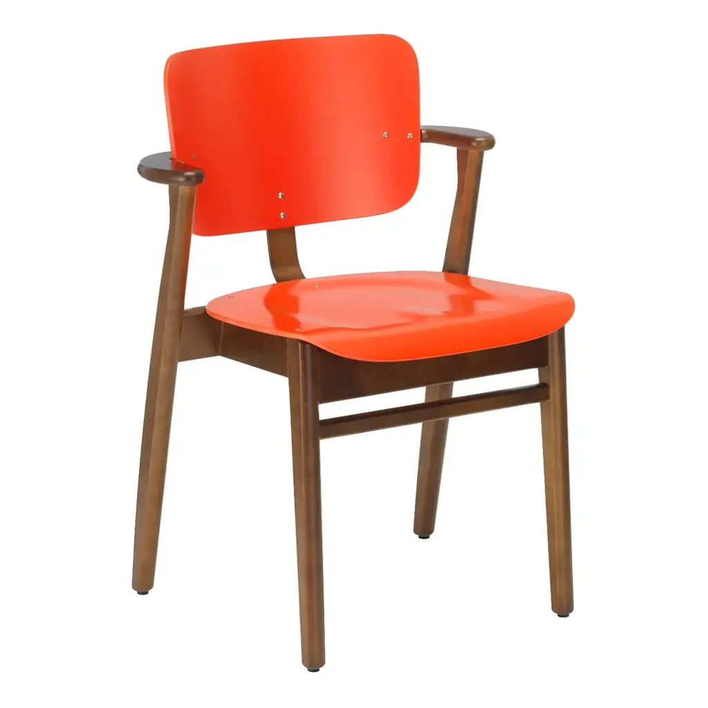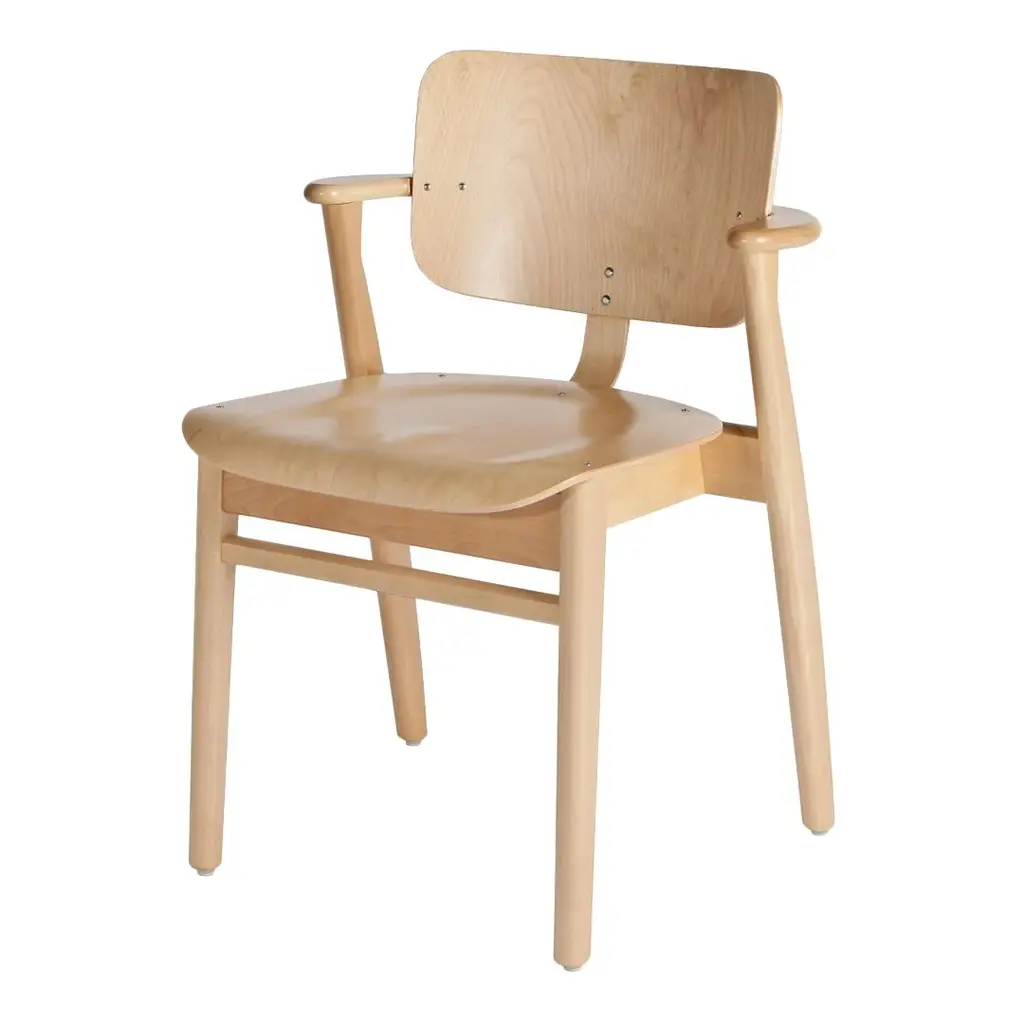 A masterpiece of modern furniture design, the Domus Chair was created as part of a series of furniture for the Domus Academica student housing complex in Helsinki. Comfortable enough to allow sitting for long periods of time, the Domus Chair achieved great success internationally, becoming known as "The Finn Chair." The characteristic short arms mean that the Domus Chair can be pulled close to a table, perfect for studying at a desk and dining, while offering the necessary support and comfort. Designed in 1946 by Ilmari Tapiovaara, Domus Chairs have been placed in homes and public spaces around the world ever since.