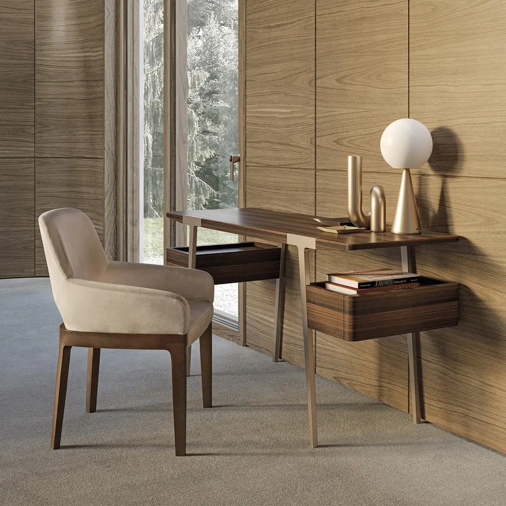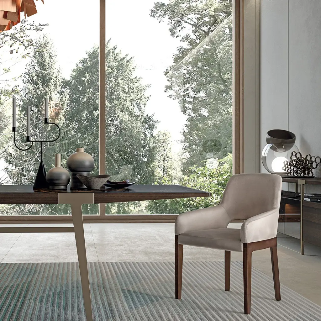 Perfectly tailored for an elegant evening, the Domus Dining Armchair from Turri is crafted from eucalyptus wood, the foundational element of the entire collection. Its backrest features a decorative cut near the seat, striking a perfect balance between minimalist lines and refined detailing. Available in various finishes, this chair combines natural elegance with sophisticated craftsmanship to complement any dining setting. Highlights