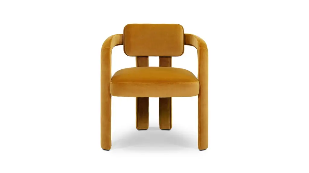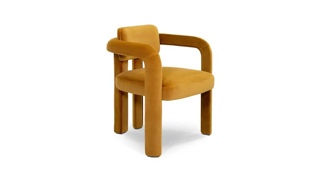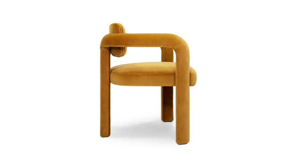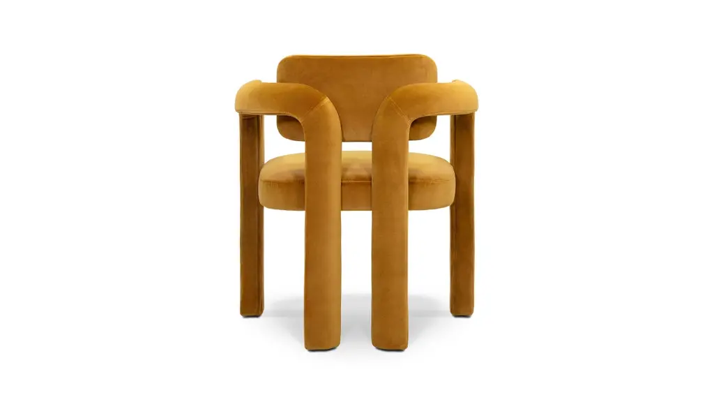 Located in Arches National Park in Utah, USA, Double Arch is a grand natural formation which results from an underground sandstone pocket where water and wind erosion gradually sculpted the rock over millions of years.Inspired by this rock formation with intertwined sandstone arches, the design of the Double Arch dining chair conveys the same flat shape underneath the natural arches, showing a unique cut beneath the curvy arms that purposefully disrupts the chair’s organic aesthetic.Upholstered in an all-over ochre cotton velvet, the original Double Arch dining chair echoes the earthy hues of this remarkable landmark and combines Portuguese contemporary design with expert craftsmanship, making it perfect for luxury residential and high-end hospitality interiors.Handcrafted to the highest standards, this collectable sculptural chair reflects InsidherLand’s dedication to exclusive furniture.Product detailsUpholstery: InsidherLand Cotton Velvet Ref. 0166COM: 3m 118,11’’ Plain Fabric; 3,5m 137,79’’ Pattern Fabric (Standard width 140 cm55’’)Product optionsUpholstery: InsidherLand fabrics or client fabric.Arm Height 69cm 27,16’’Weight12kg 26,5 lbsMade to order. Custom sizes and other finishes are available under request.Designed by Joana Santos Barbosa, 2025. Handmade in Portugal.