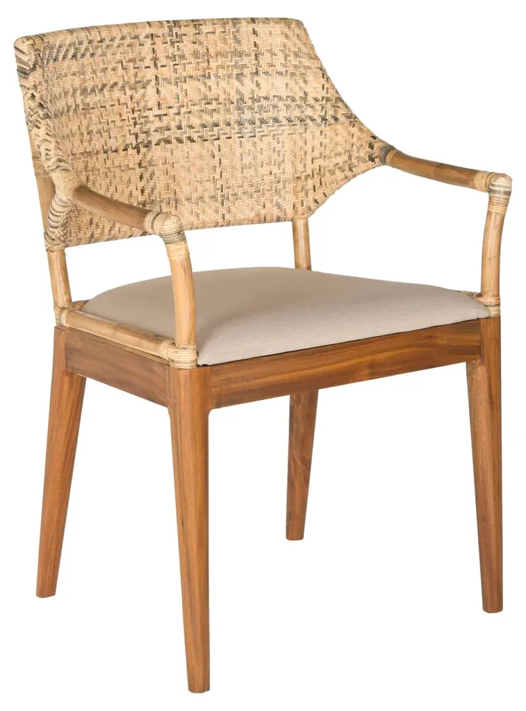 Give a fresh and inviting update to your space with our charming dining chair. Our modern chair is updated with the beauty of natural materials to liven up your home. Its refined barrel back is woven to attain a texturally rich and inviting appeal. Sleek legs complete the airy and modern profile of our chair. It features a hugging back and padded cushion to lend plenty of comfort. Offering rich textures and warm neutrals, our modern dining chair remains the perfect complement to your casual dining spaces and laid-back lounges.