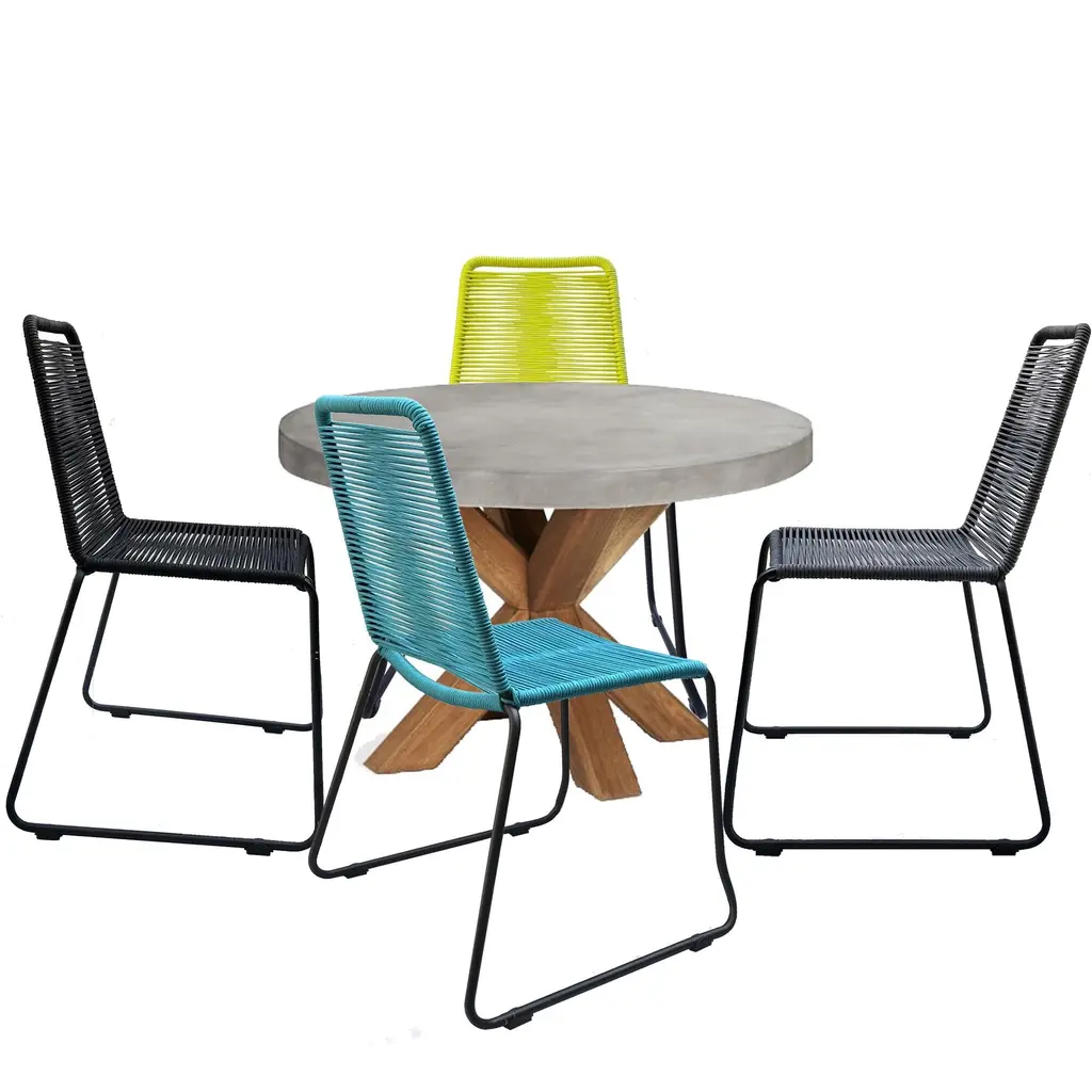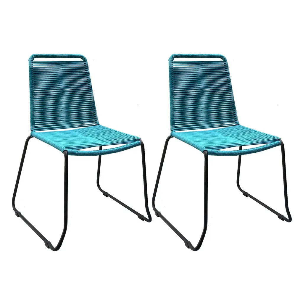 Experience the perfect blend of durability and style with the DreamPatio Lux Rope Chair - Set of 2, available in Jet Black, Lava Grey, Lemon Yellow, or Tiffany Blue. These outdoor dining chairs feature a sturdy galvanized frame with a black powder-coated finish, while the UV-treated polypropylene rope ensures long-lasting use. The fishbone weave rope provides a comfortable seating experience without the need for extra cushions. Stackable and low maintenance, these chairs come fully assembled and include a standard 2-year limited warranty. Please note that color and saturation may vary due to lighting and screen settings.Features: