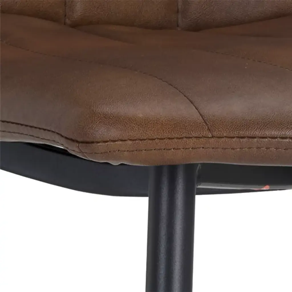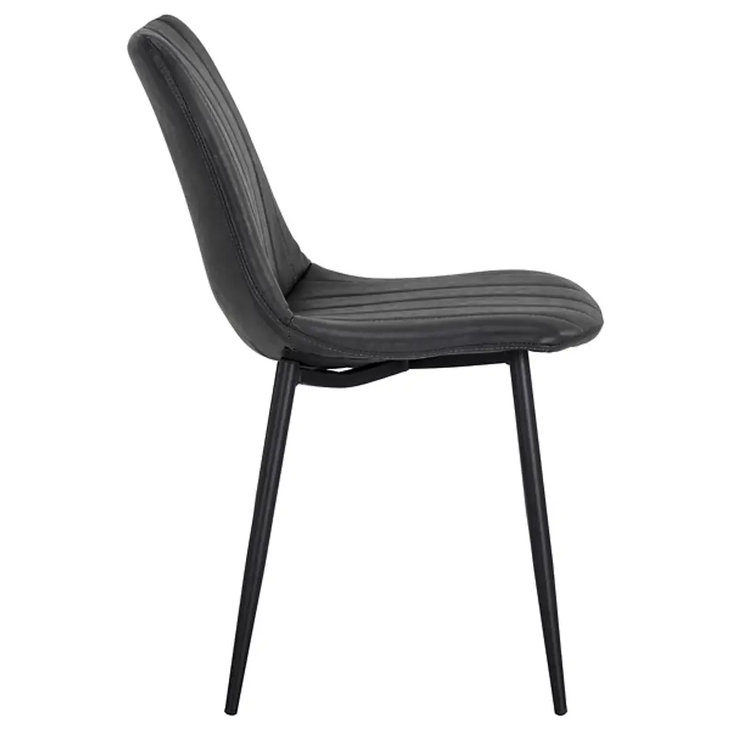 The Drew Dining Chair, Set of 2, is presented by Sunpan. With its mid-mod silhouette, this compact dining chair brings a touch of nostalgia to your dining space. The channel tufting on both the seat and seatback adds visual interest and a sense of refinement. The artisan-crafted faux leather upholstery exudes luxury and durability, ensuring long-lasting beauty and comfort. The Pomander is supported by gracefully slender tapered steel legs, providing stability and a modern flair.