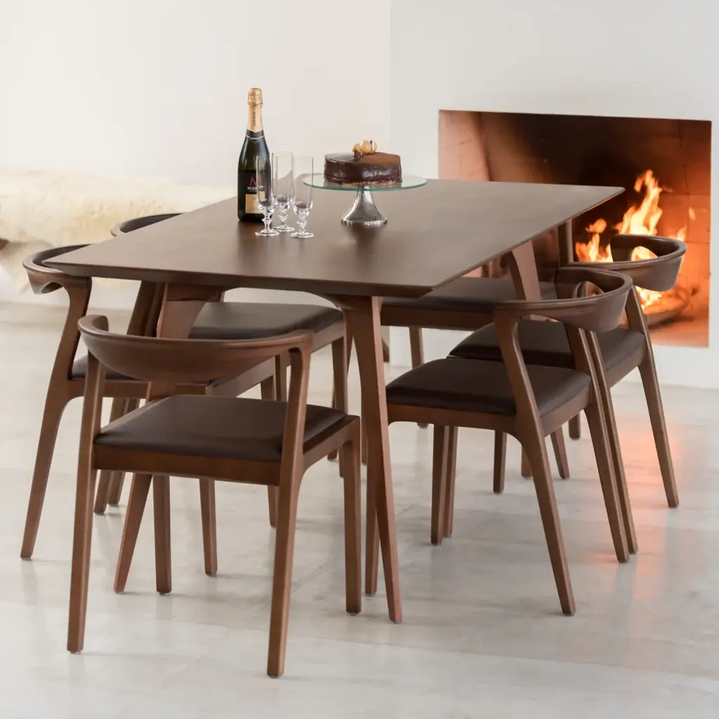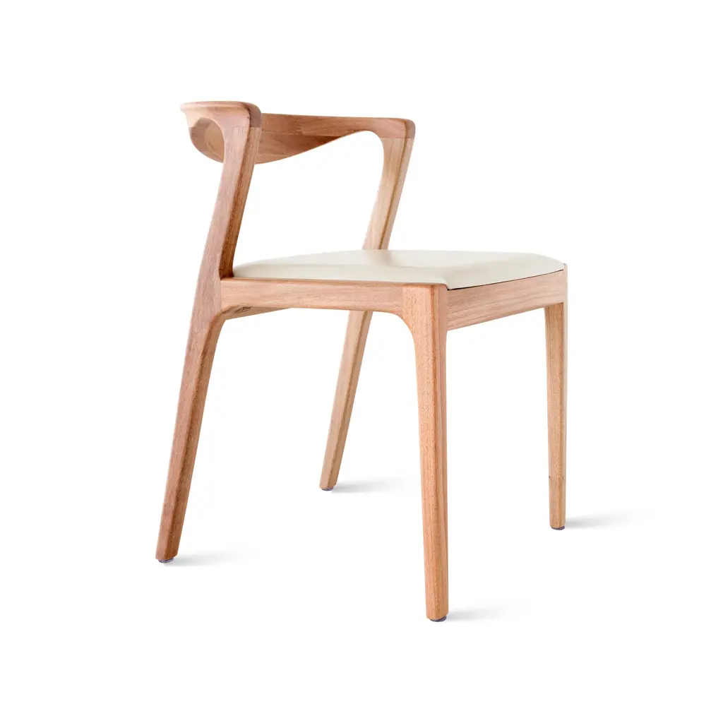 Indulge in the ultimate dining experience with the Duda Dining Chair from Sossego. Its sensuous and curvy silhouette adds a touch of elegance, while the solid hardwood construction ensures exceptional comfort and functionality. Slide it completely under a table for space-saving convenience, and know that with each delivery, a tree is planted in Brazil for a sustainable future. Highlights