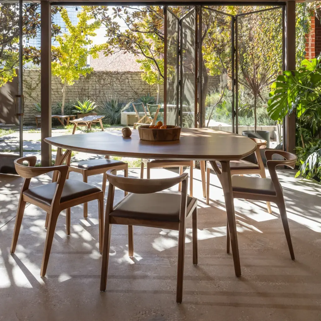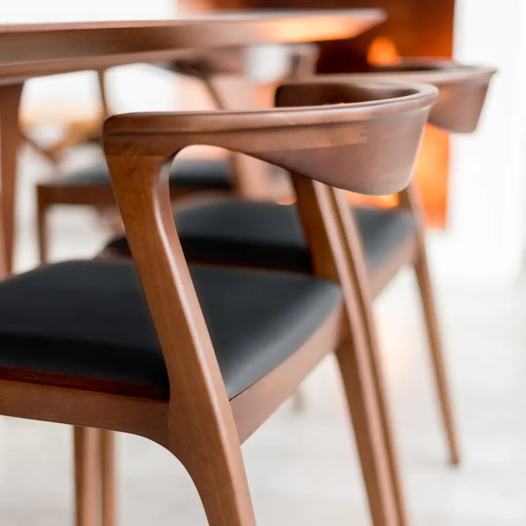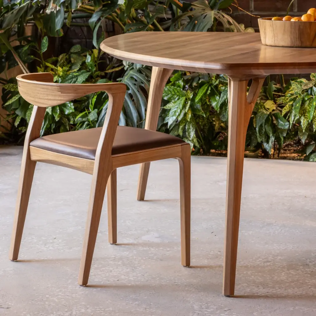 Indulge in the ultimate dining experience with the Duda Dining Chair from Sossego. Its sensuous and curvy silhouette adds a touch of elegance, while the solid hardwood construction ensures exceptional comfort and functionality. Slide it completely under a table for space-saving convenience, and know that with each delivery, a tree is planted in Brazil for a sustainable future. Highlights