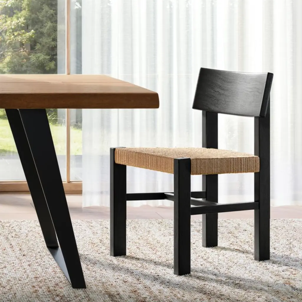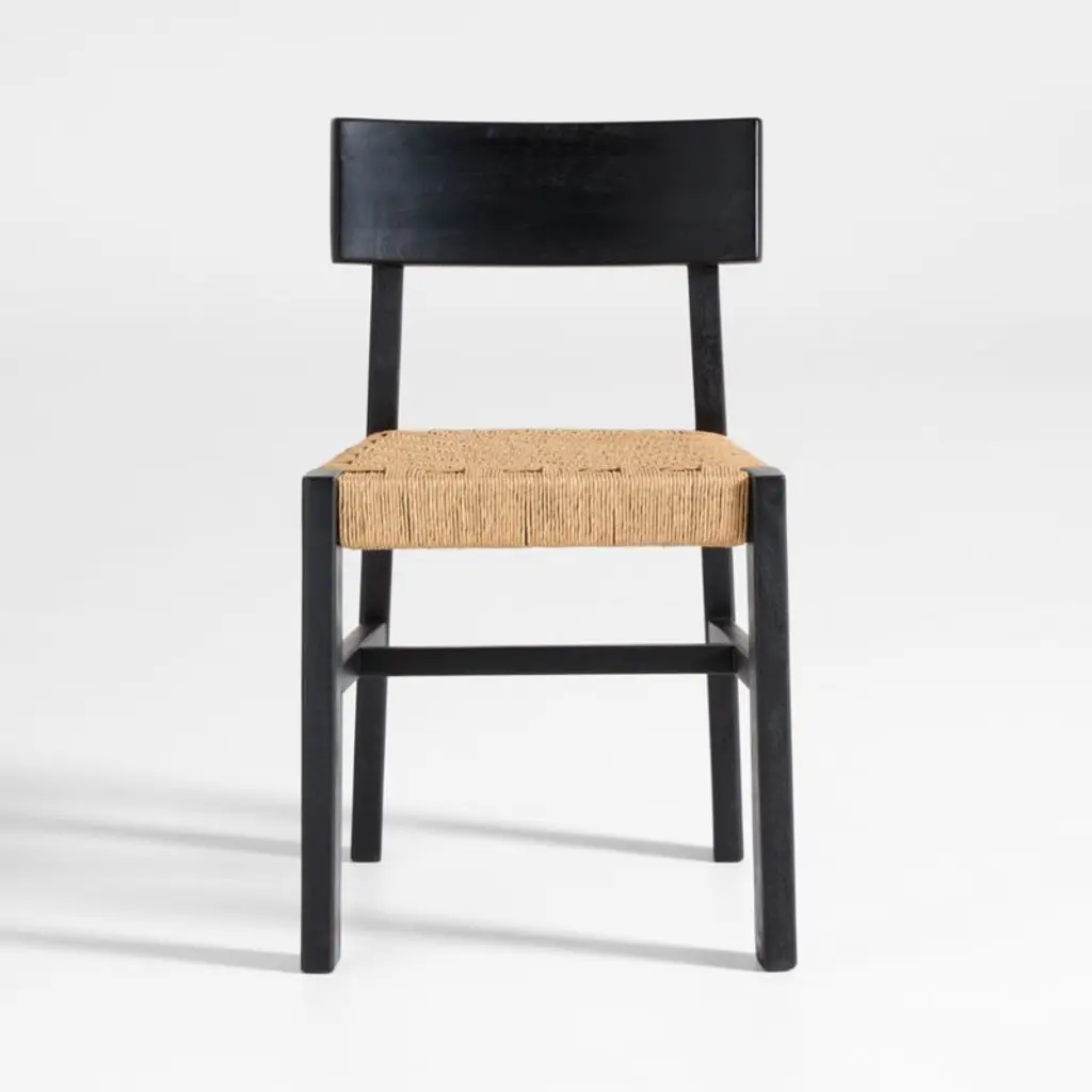 Designed to coordinate with our Dunewood table, this handsome dining chair pulls up to any table with comfort and decor-friendly style. Black-finished mango wood shapes the rustic-made-modern look with square legs and handwoven rush seat made of paper cord. A slightly rounded back panel provides linger-worthy support.