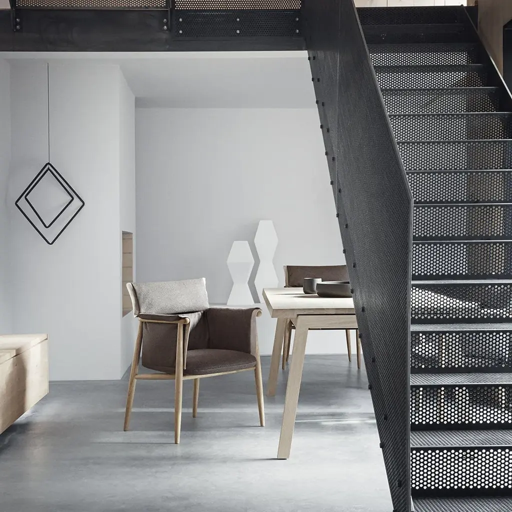 The Carl Hansen & Søn Embrace Dining Chair (E005) represents a masterful fusion of modern Austrian design and legendary Danish craftsmanship. Created in 2015 by acclaimed design trio EOOS, this sculptural piece challenges traditional dining chair conventions while honoring Carl Hansen & Søn's century-old commitment to quality. The chair's most striking feature is its innovative 'floating' cushion design – a single, three-dimensional form that ingeniously serves as seat, backrest, and armrests. This sophisticated upholstered element appears to hover within the chair's solid wood frame, creating a visual lightness that belies its exceptional comfort. The frame itself showcases exquisite artisanship, particularly in the back's three-piece construction with classic finger joints, demonstrating that structural elements can be both functional and aesthetically captivating. At 24 inches wide, 20.5 inches deep, and 32.7 inches high, with a comfortable 18.3-inch seat height, the Embrace Chair strikes an ideal balance between dining comfort and spatial efficiency. The frame, available in premium solid oak or walnut with various finishes, features continuous wooden elements where the legs integrate seamlessly into the overall silhouette rather than appearing as mere appendages. Perfect for both residential and commercial environments, this versatile chair transcends its dining room origins to serve as a distinctive accent piece in any sophisticated interior. The customizable upholstery options, including contrasting edge strips, allow for personalization while maintaining the chair's clean, contemporary aesthetic.