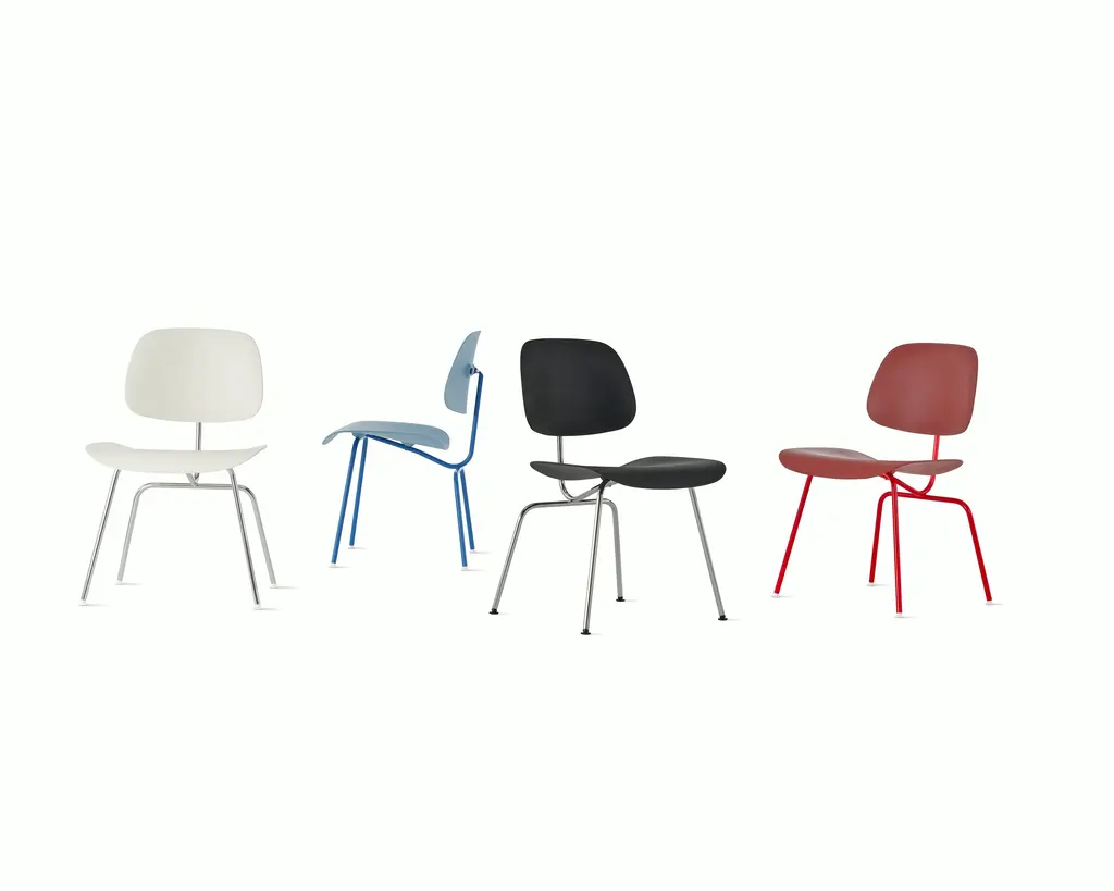 Originally introduced in 1970 as EC-127, the Eames Molded Plastic Dining Chair combines a vibrant range of colors and upholsteries with the comfort of the original design. This updated version retains the iconic form, offers a non-upholstered option, and uses 99% post-industrial recycled plastic for a more sustainable design that honors the inventive and iterative spirit of Charles and Ray Eames.