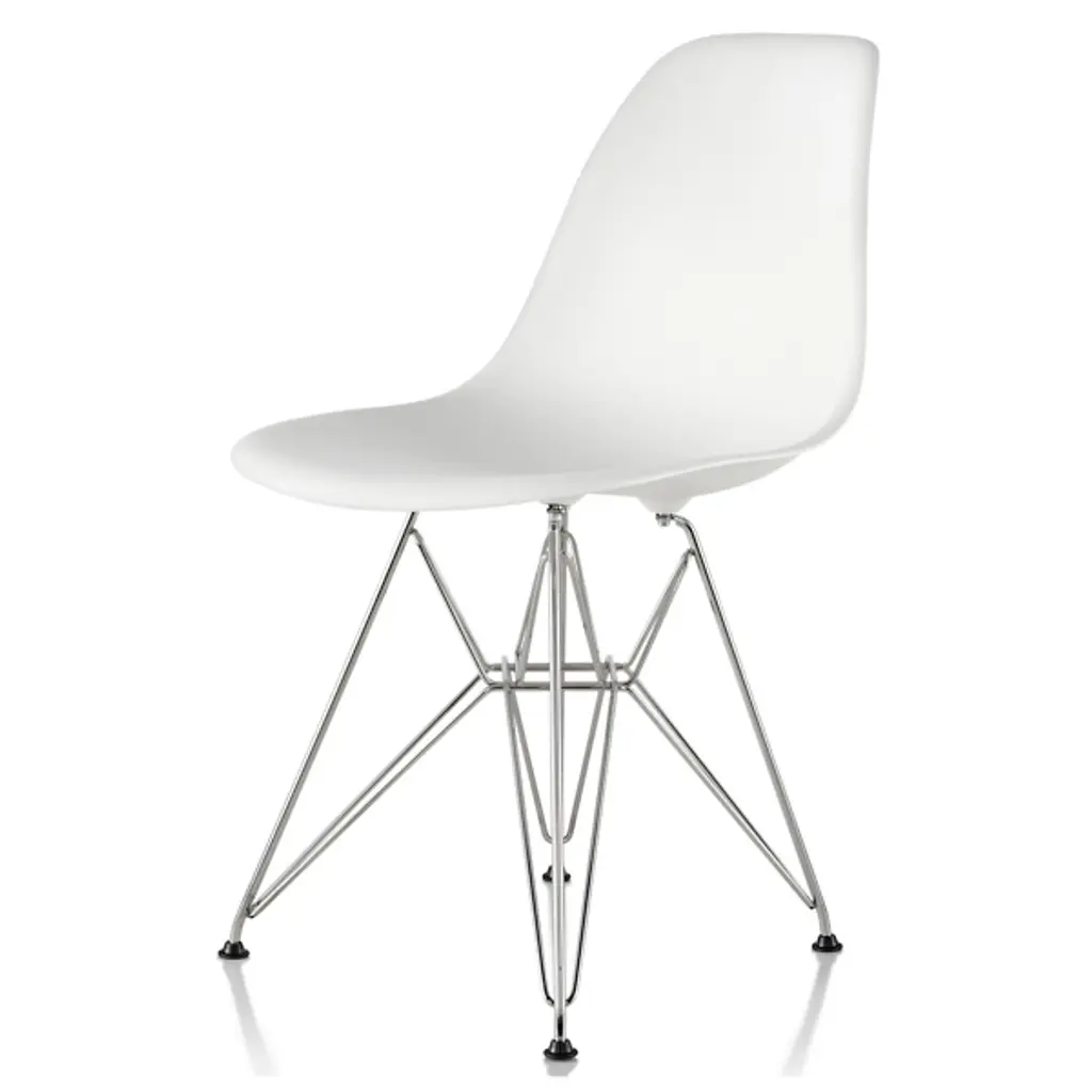 A side chair for everyone, for every need, in every way. The Eames® Molded Plastic Side Chair with Metal Base by Herman Miller is a classic from legendary designers Charles and Ray Eames. Made of 100% recyclable material, the Molded Plastic Side Chair has a polypropylene shell with a subtle matte texture which gives a soft appearance while remaining highly durable. The Eames Side Chair has a versatile look which is suitable for the dining room, living room, office, laundromat, and more—the options are virtually limitless. Choose from a variety of shell colors and finishes to fit this timeless piece into your modern living space.