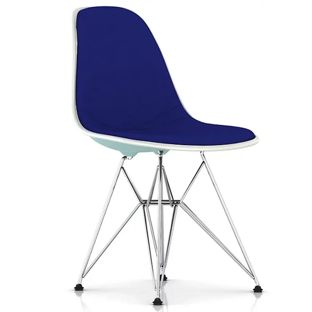 Eames Molded Plastic Side Chair With Wire Base, Upholstered