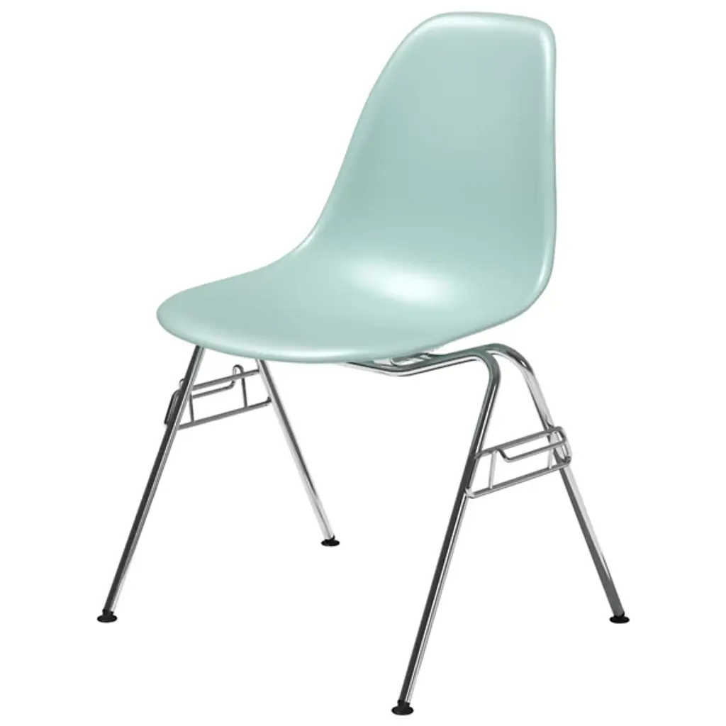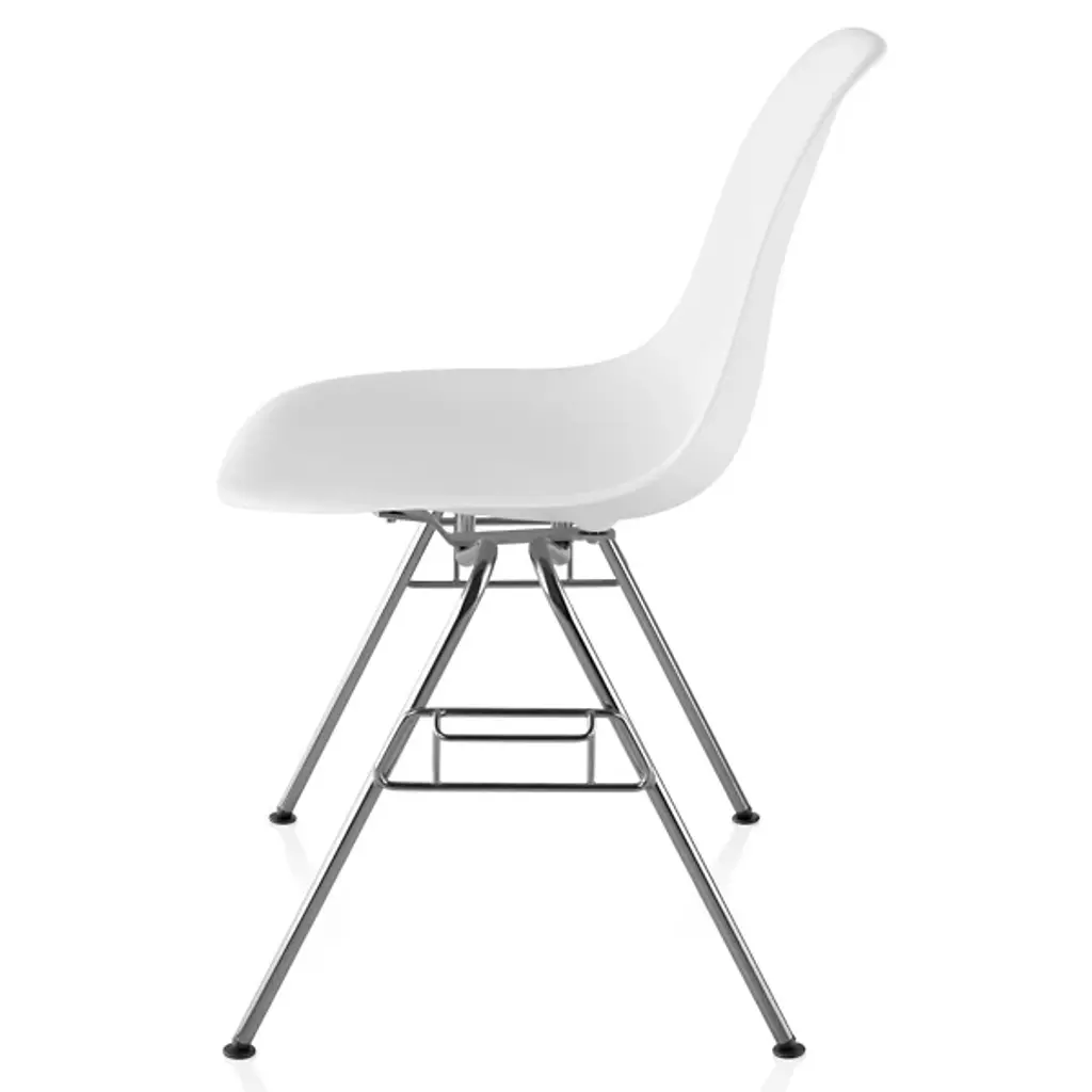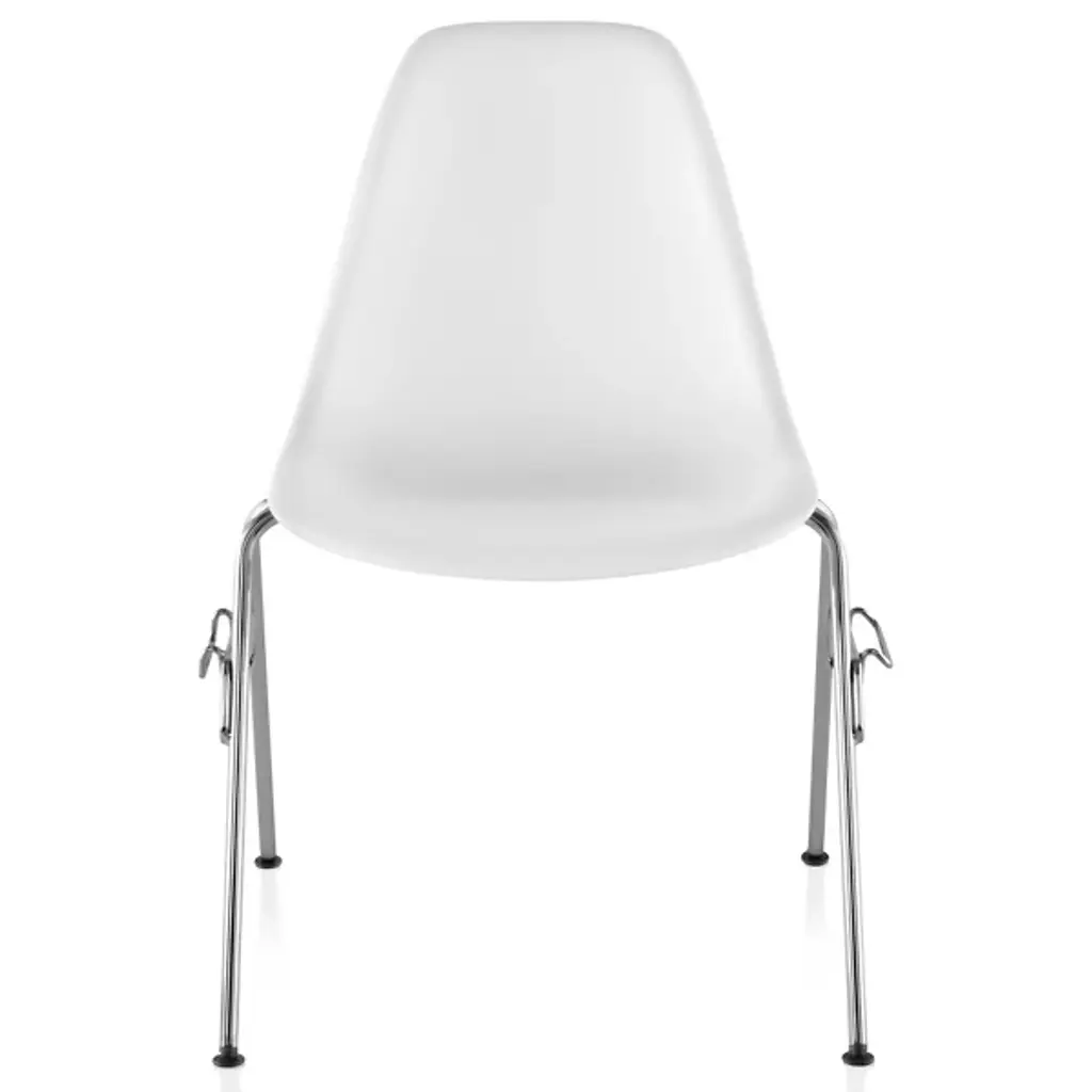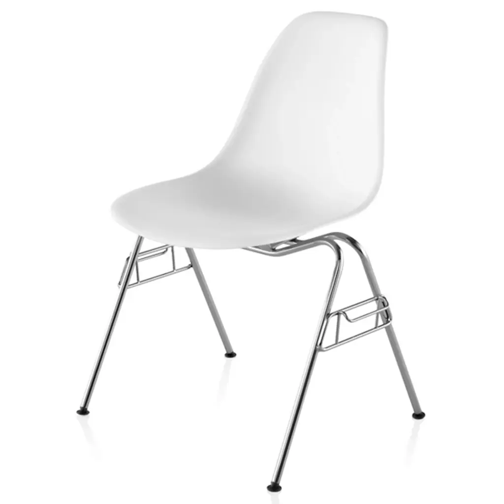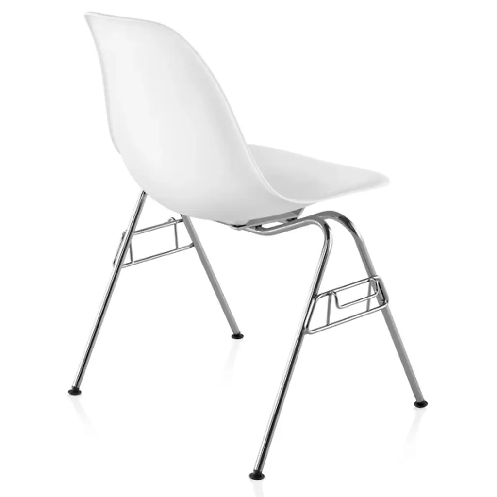 The Eames® Molded Plastic Stacking Chair by Herman Miller® features the collection's signature molded polypropylene seat: smooth, organic and supremely comfortable. A variety of colors also make it quite versatile and fashionable. The chromed metal base has a wide stance that both provides stability and allows the chair to be easily stacked.