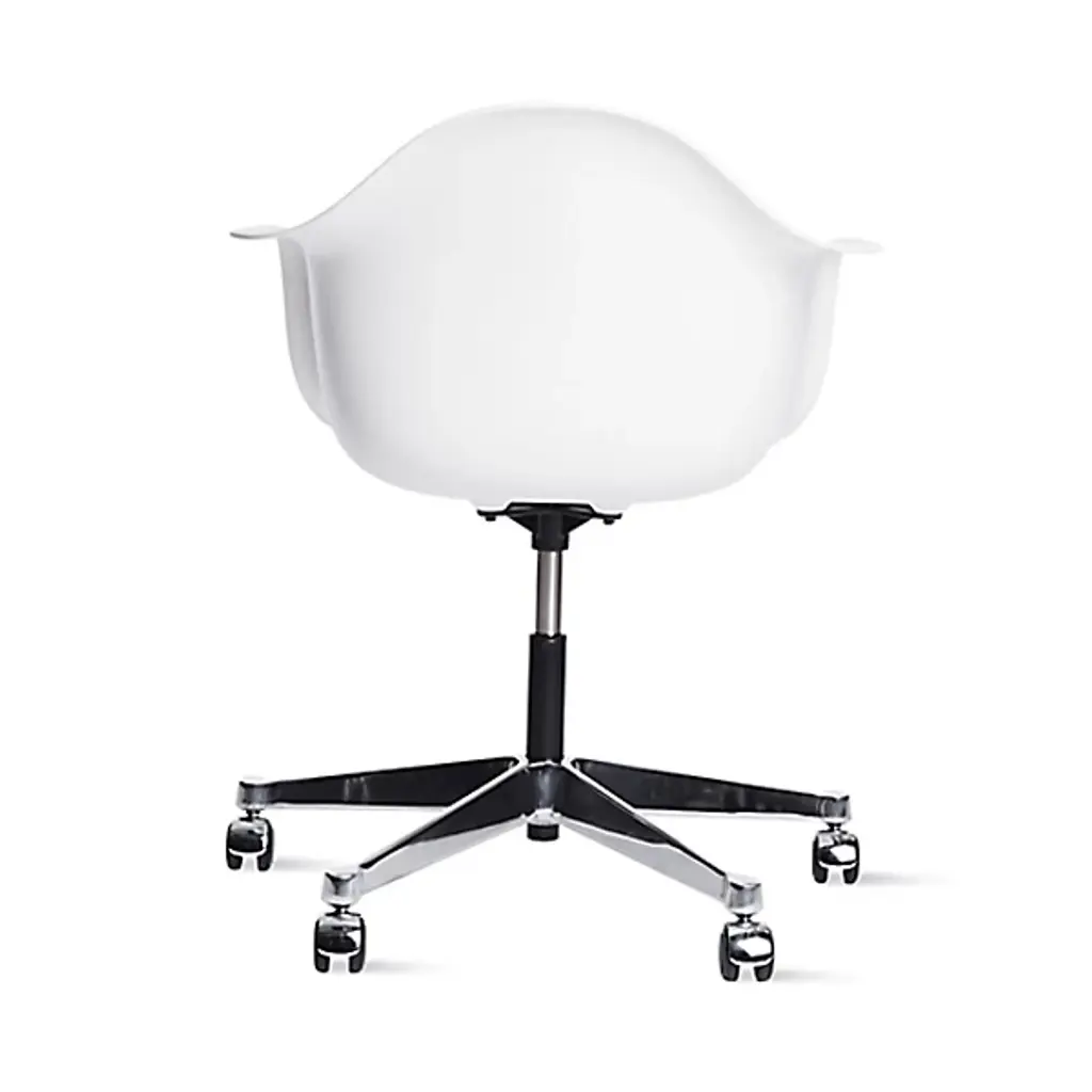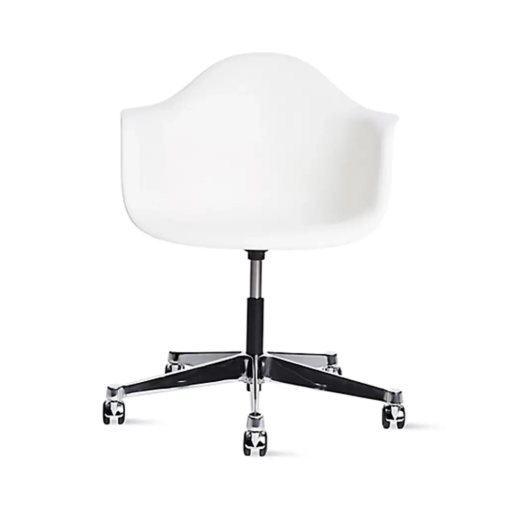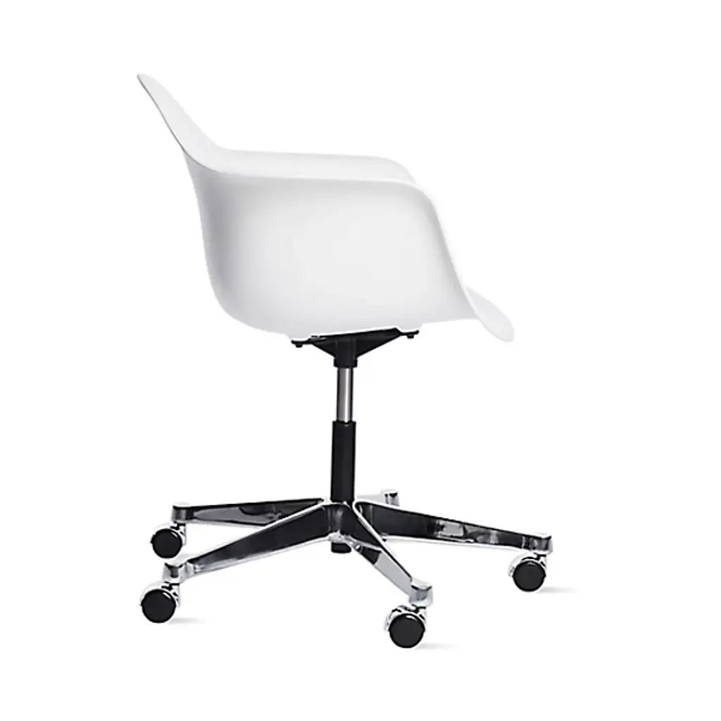 Designed with comfort and flexibility in mind, the Eames Molded Plastic Task Armchair is a task chair that has been reinvented with a modern take from the original Eames molded shell. Whether you're at home, at the office or any modern workspace area, the Eames Molded Plastic Task Armchair is a one-piece molded shell constructed of polypropylene that is strong and durable. It features a height adjustable system and a die-cast aluminum five-star base with mobile nylon casters which are ideal for hard floor or carpet areas. Versatile and comfortable for anyone who uses it, where you will look good and feel good in it. Comes in a range of molded colors.