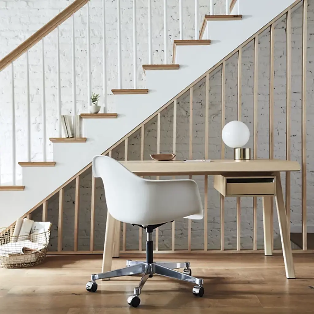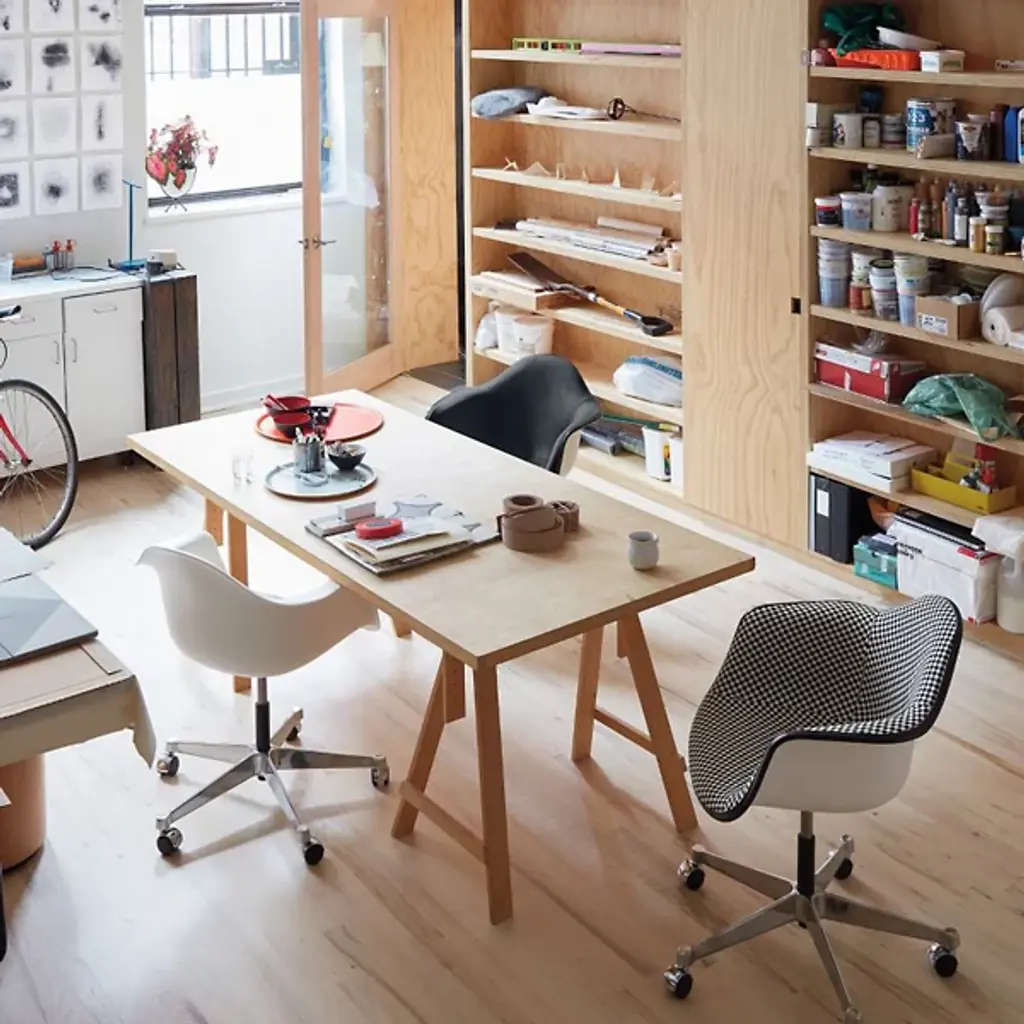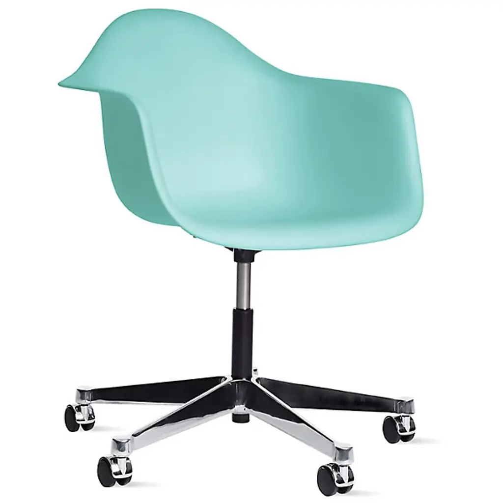 Designed with comfort and flexibility in mind, the Eames Molded Plastic Task Armchair is a task chair that has been reinvented with a modern take from the original Eames molded shell. Whether you're at home, at the office or any modern workspace area, the Eames Molded Plastic Task Armchair is a one-piece molded shell constructed of polypropylene that is strong and durable. It features a height adjustable system and a die-cast aluminum five-star base with mobile nylon casters which are ideal for hard floor or carpet areas. Versatile and comfortable for anyone who uses it, where you will look good and feel good in it. Comes in a range of molded colors.
