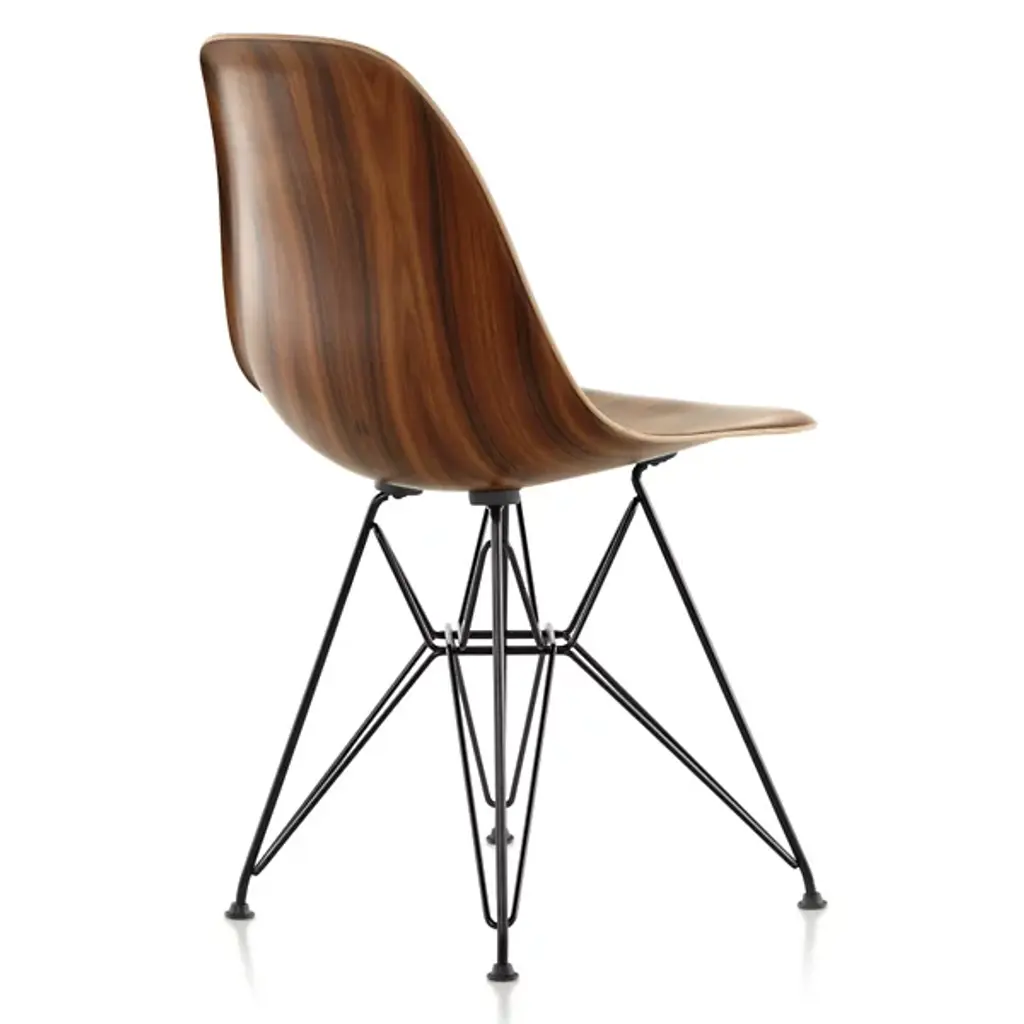 The Eames® Molded Wood Side Chair - Wire Base by Herman Miller® is a natural extension of the Eames' original work with molded plywood. The chair's authentic form is achieved through the use of modern 3-D veneer technology. The sharp architectural structure of the metal wire base contrasts beautifully with the smooth curves and natural grain of the wood seat.