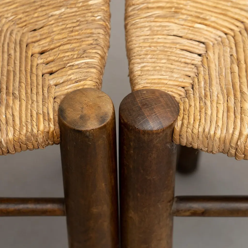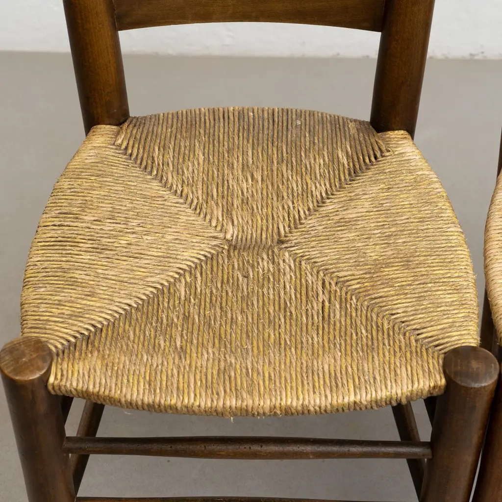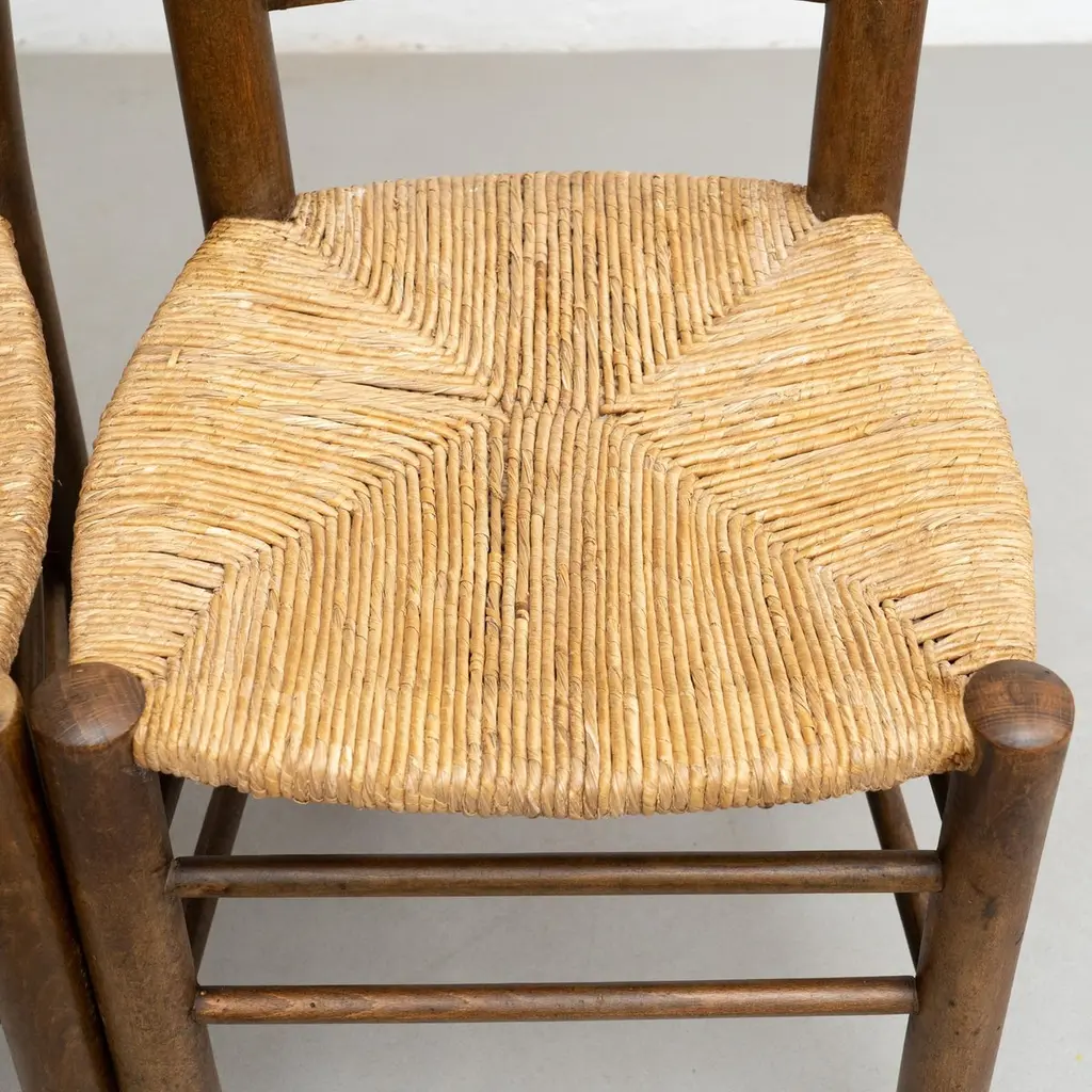 Early 20th century set of two chairs. Wooden chairs with a traditional rattan seat. In good original condition, with minor wear consistent with age and use, preserving a beautiful patina. Materials: Wood Rattan Dimensions: D 44.5 cm x W 49 cm x H 86 cm.