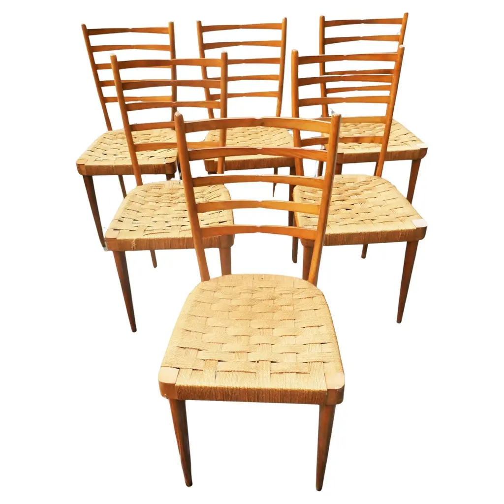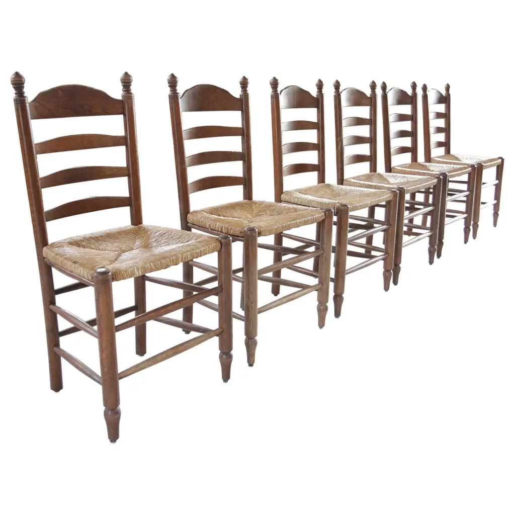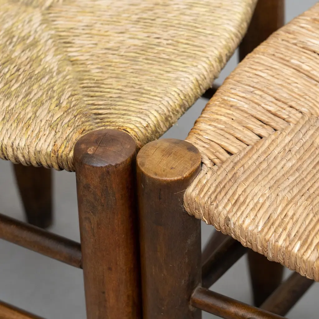 Early 20th century set of two chairs. Wooden chairs with a traditional rattan seat. In good original condition, with minor wear consistent with age and use, preserving a beautiful patina. Materials: Wood Rattan Dimensions: D 44.5 cm x W 49 cm x H 86 cm.