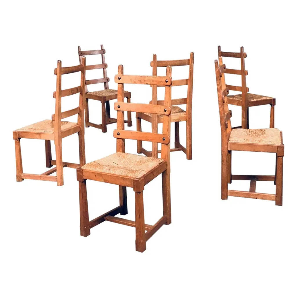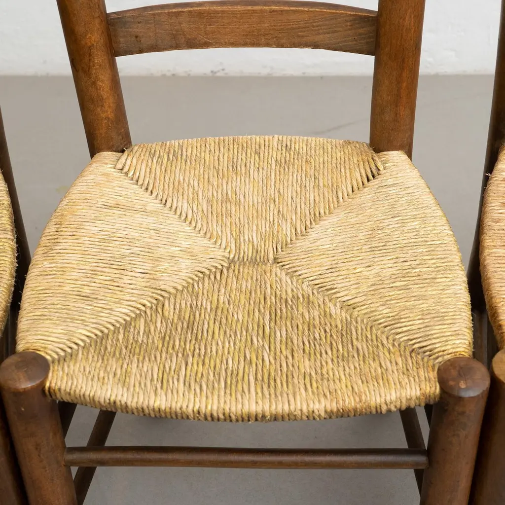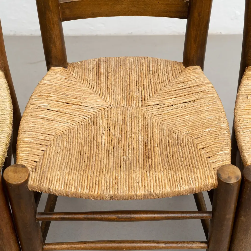 Early 20th Century Set Of Four Rattan And Wood Chairs