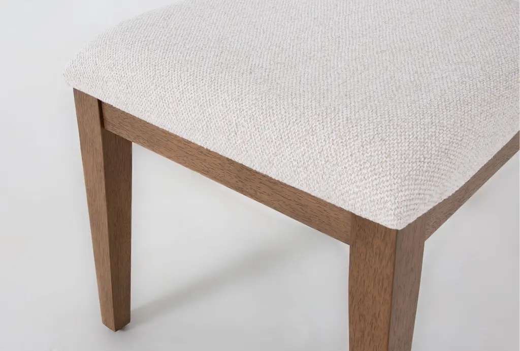 Enhance your dining experience with the Eden Ivory Upholstered Dining Chair Set Of 2. These modern chairs feature a warm natural oak finish and are made from a sturdy combination of rubberwood and cathedral oak veneers. The ivory fabric upholstery provides a soft and inviting seating option suitable for any dining room or kitchen.