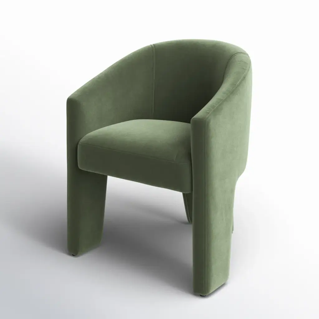 This armchair is all about bold curves and cozy comfort. The fully upholstered frame gives it a sculptural look from every angle, while the soft foam fill keeps things cushy. It’s built on a kiln-dried wood frame with mortise-and-tenon joinery — so yes, It’s just as sturdy as it looks. No wheels, no swivel — just clean lines, supportive arms, and a modern silhouette that makes a subtle statement.