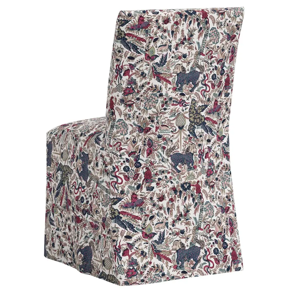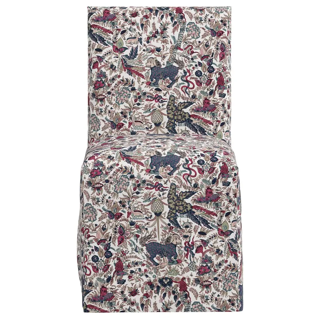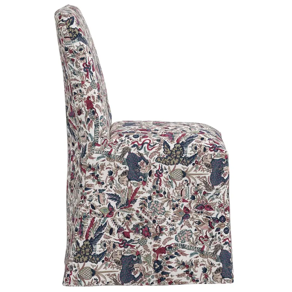 At once casual and formal, depending on your décor, this slipcovered dining chair offers timeless versatility and endless comfort. Featuring a unique Bali Lion upholstery print, the classic lines and graceful base bring beautiful polish to any space. Removable slipcover.