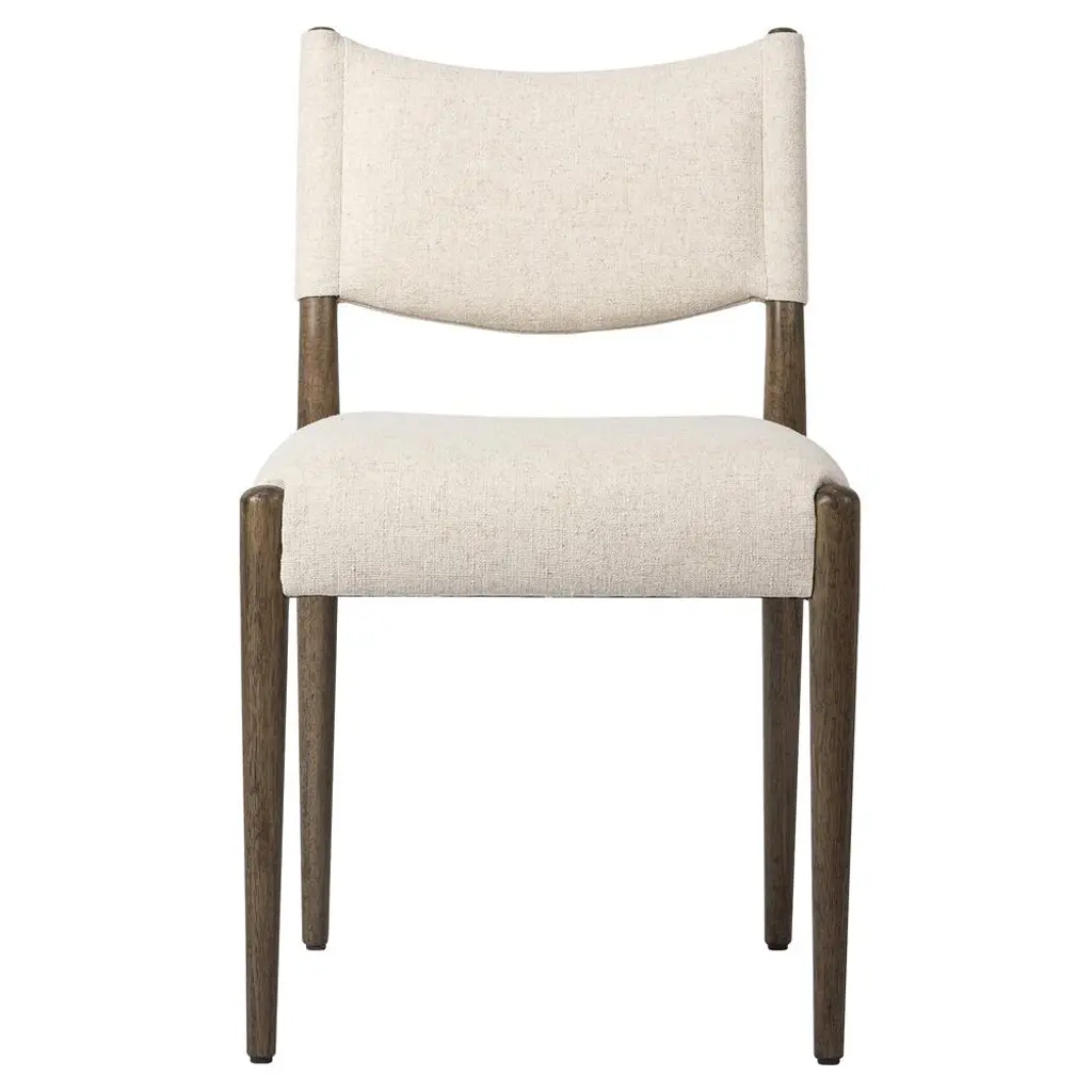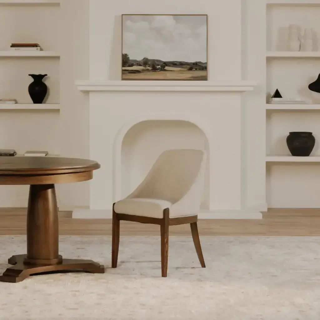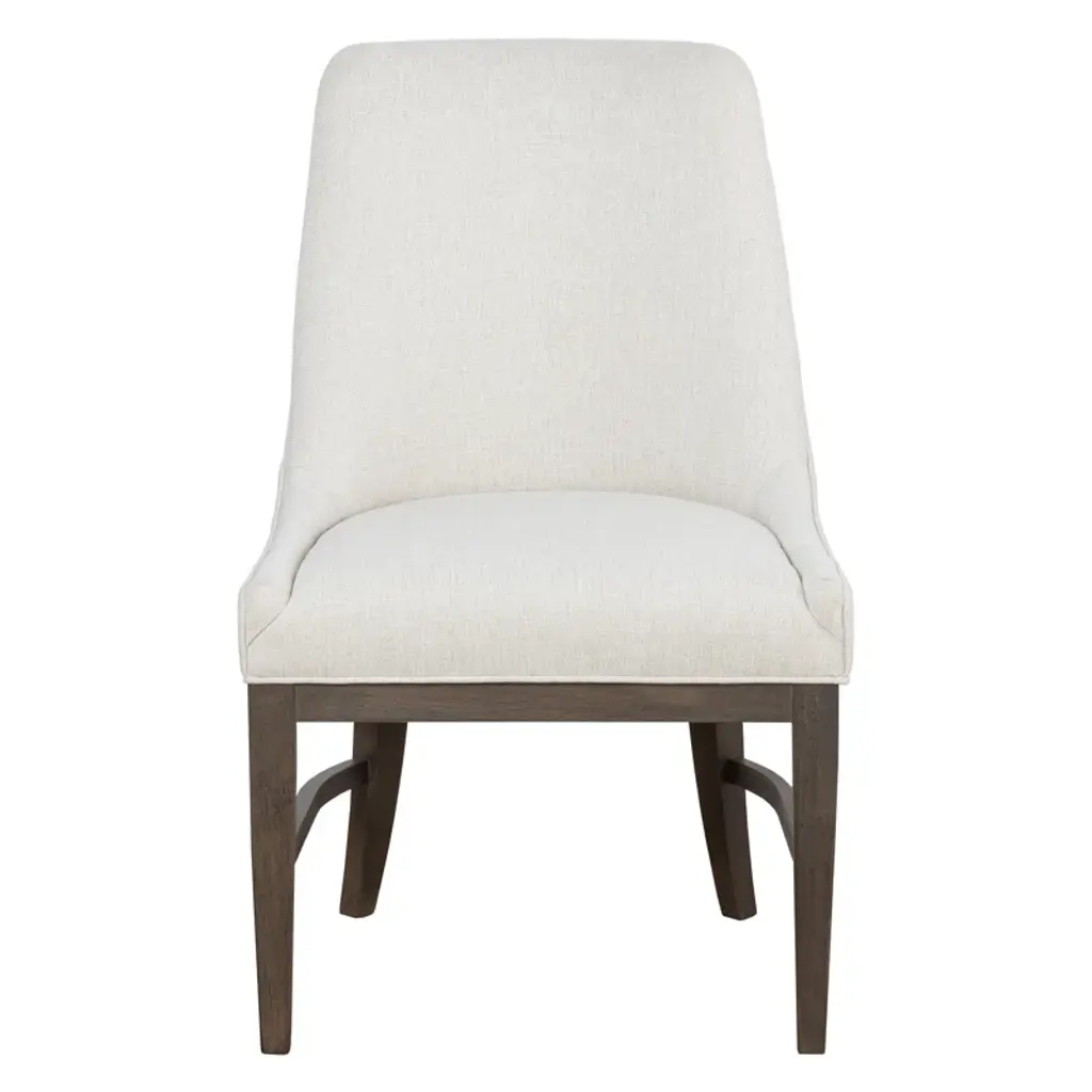 The Edward dining chair is an ideal balance of comfort and sophistication, featuring a traditional silhouette with a generously padded seat and curved backrest. Crafted from expressive solid oak in a dark espresso finish for a rustic touch and upholstered in easy-to-clean, stain-resistant performance fabric, this versatile piece seamlessly combines an enduring style with everyday livability.
