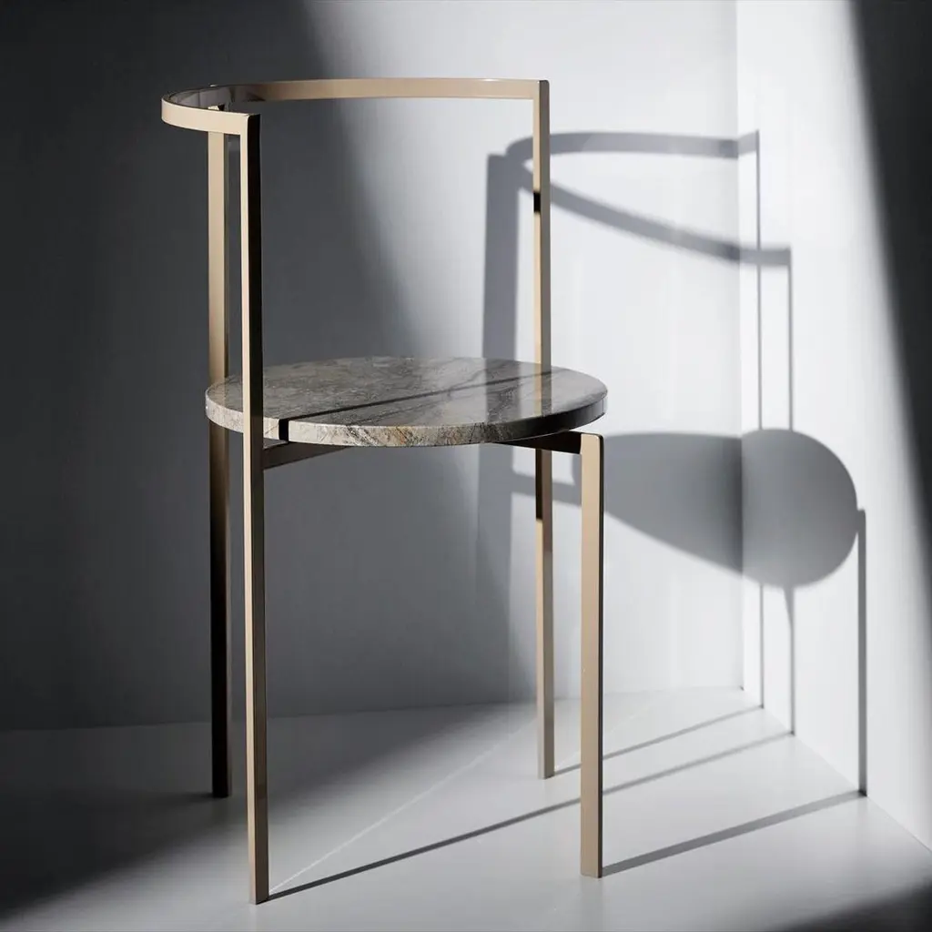 EGO chair Lisette RützouPrice for a basic version for this product.Dimensions: W 60 x H 74.5 cmMaterials: Materials: Marble / steelColors: chrome & stripe marble black / White top Lisette Rützou’s design is motivated by an urge to articulate a story. Inspired by the beauty of materials, form and architecture, each design is an independent statement - contemporary functionalism with a feminine touch. Each piece tells an individual story – an embodiment of emotion ? “I hope with my design to create a reaction, a feeling beyond beauty and fine lines. To me - designing is personal – color, movement, sound and scale – a universal language essential to my approach.".