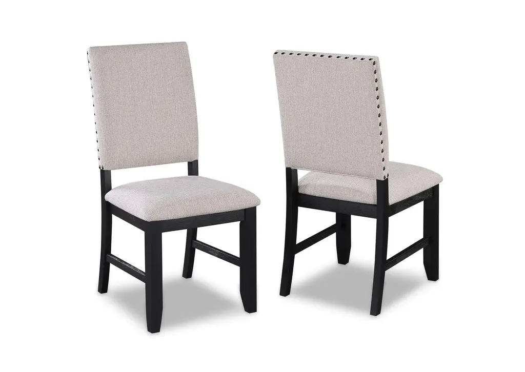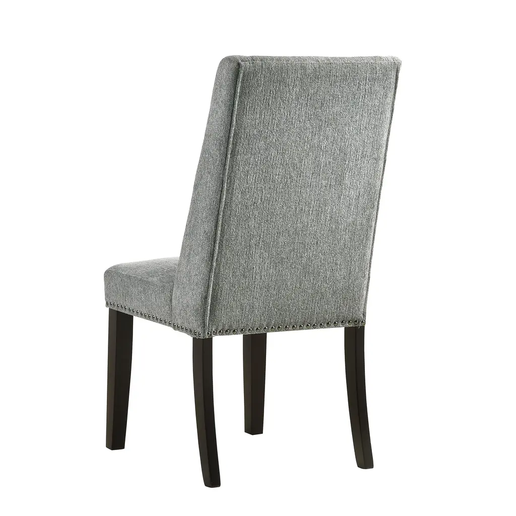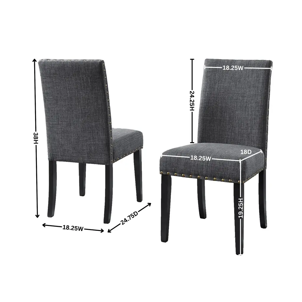 Set of 2 enticing nailhead trim dining chair, blue-colored linen and cotton fabric upholstery on the seat and chair back.; Sturdy hardwood frame with solid legs, dark espresso finish.; Dimensions: Assembled 18.25" X 24.75" X 38"H; Seat 18.25"W X 18"D; Seat height 19.25"H; Back 16.25"W X 24.25"H; Some assembly required, all parts and instructions included; Photo may be slightly different from the actual item in terms of color due to the monitor's display