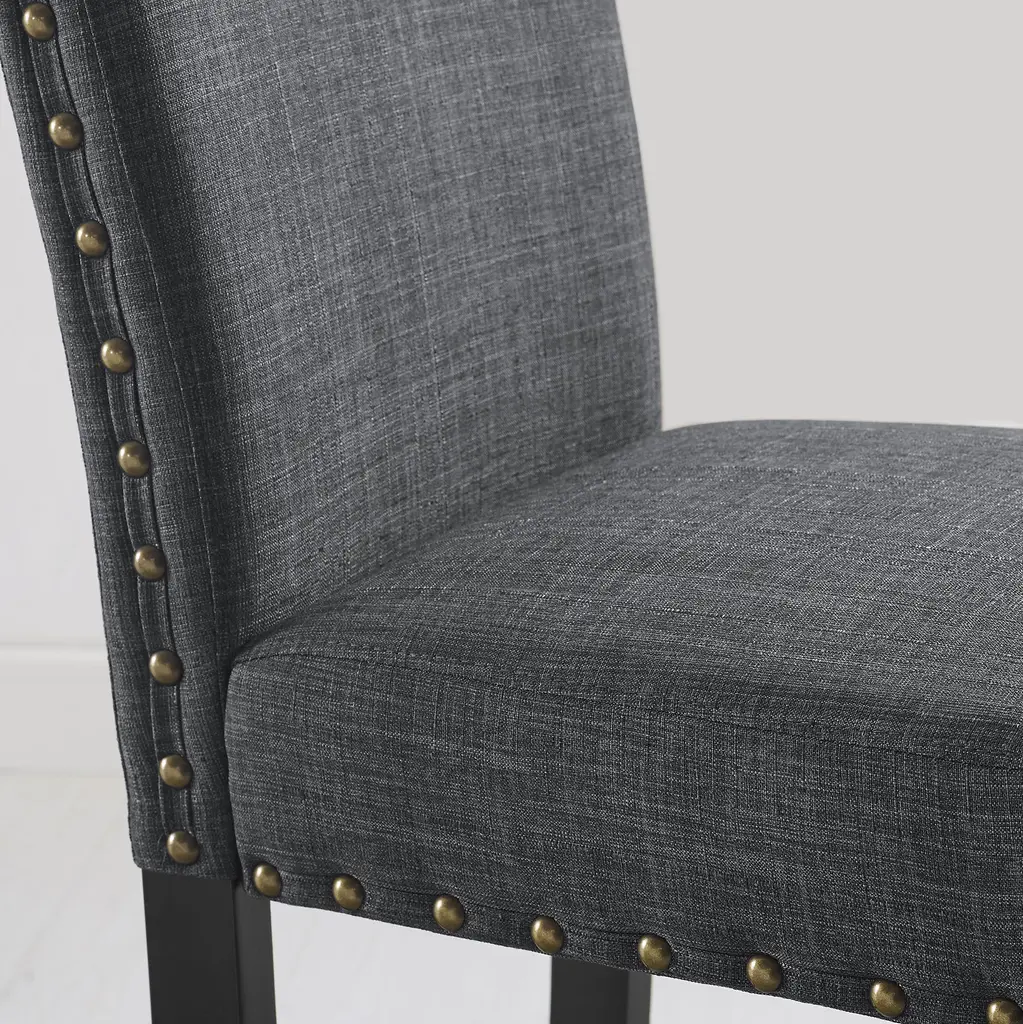 Set of 2 enticing nailhead trim dining chair, blue-colored linen and cotton fabric upholstery on the seat and chair back.; Sturdy hardwood frame with solid legs, dark espresso finish.; Dimensions: Assembled 18.25" X 24.75" X 38"H; Seat 18.25"W X 18"D; Seat height 19.25"H; Back 16.25"W X 24.25"H; Some assembly required, all parts and instructions included; Photo may be slightly different from the actual item in terms of color due to the monitor's display