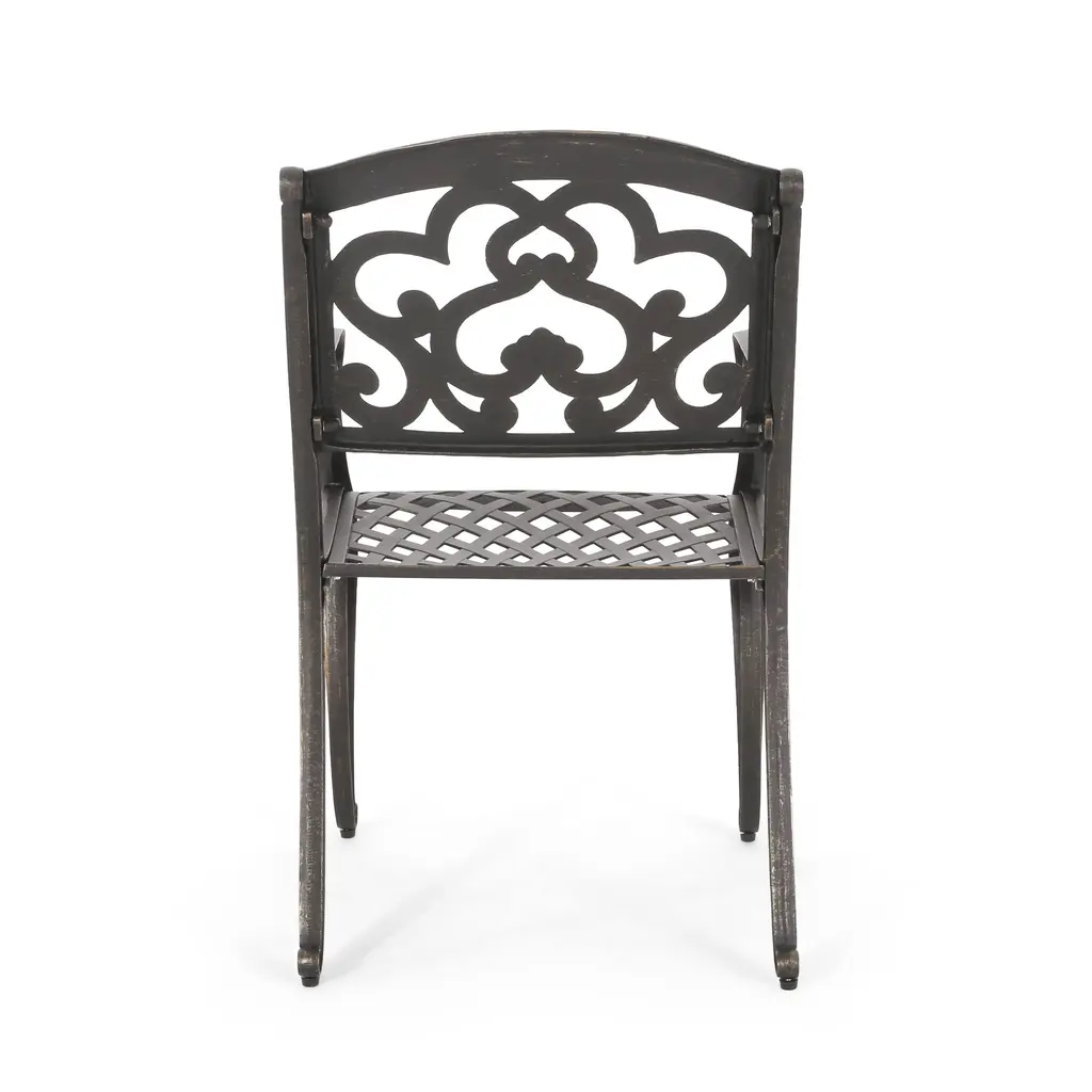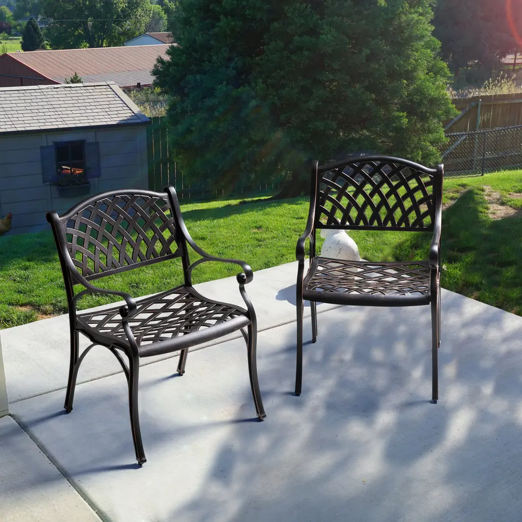 These cast aluminum dining chairs are a true gem for your patio. They bring a touch of elegance and functionality to any outdoor space. The soft cloud-like design on the chair back not only looks charming but also provides a unique aesthetic. The anti-rust property ensures they remain in top condition, even in various weather conditions. The comfortable seat allows you to enjoy long hours of relaxation. Whether used alone or as part of a larger dining set, these chairs are a perfect choice for creating a inviting and stylish patio atmosphere. They are a testament to quality and style, making your outdoor area a place you'll love to spend time in.