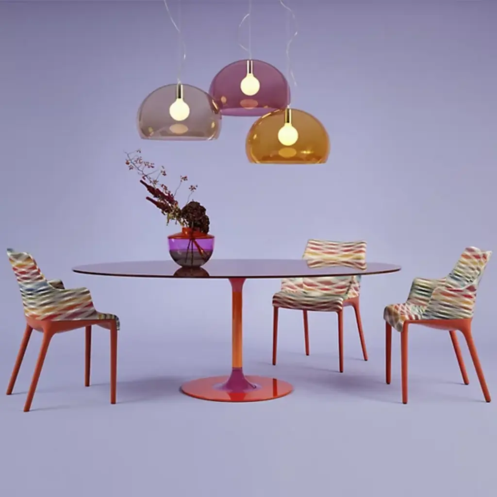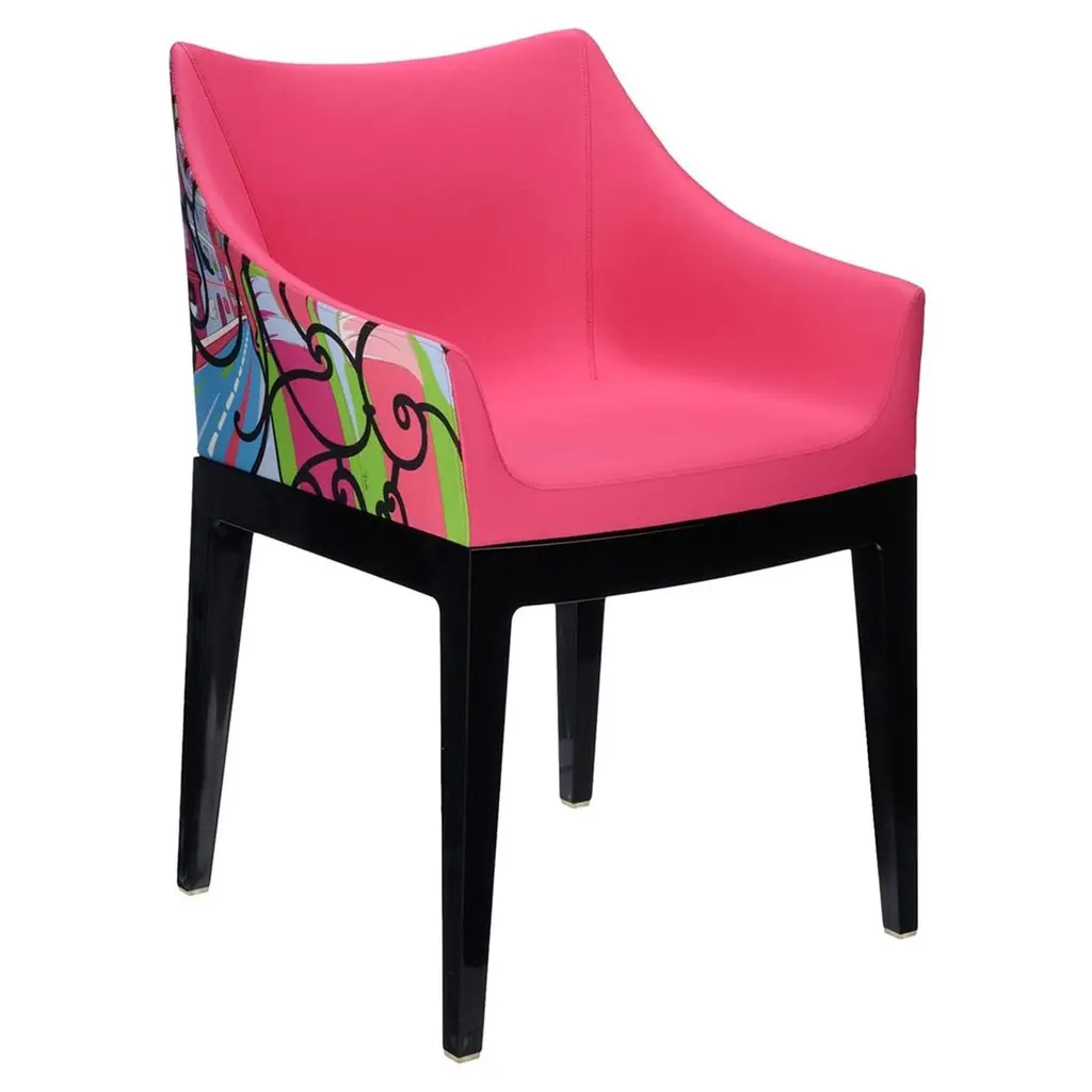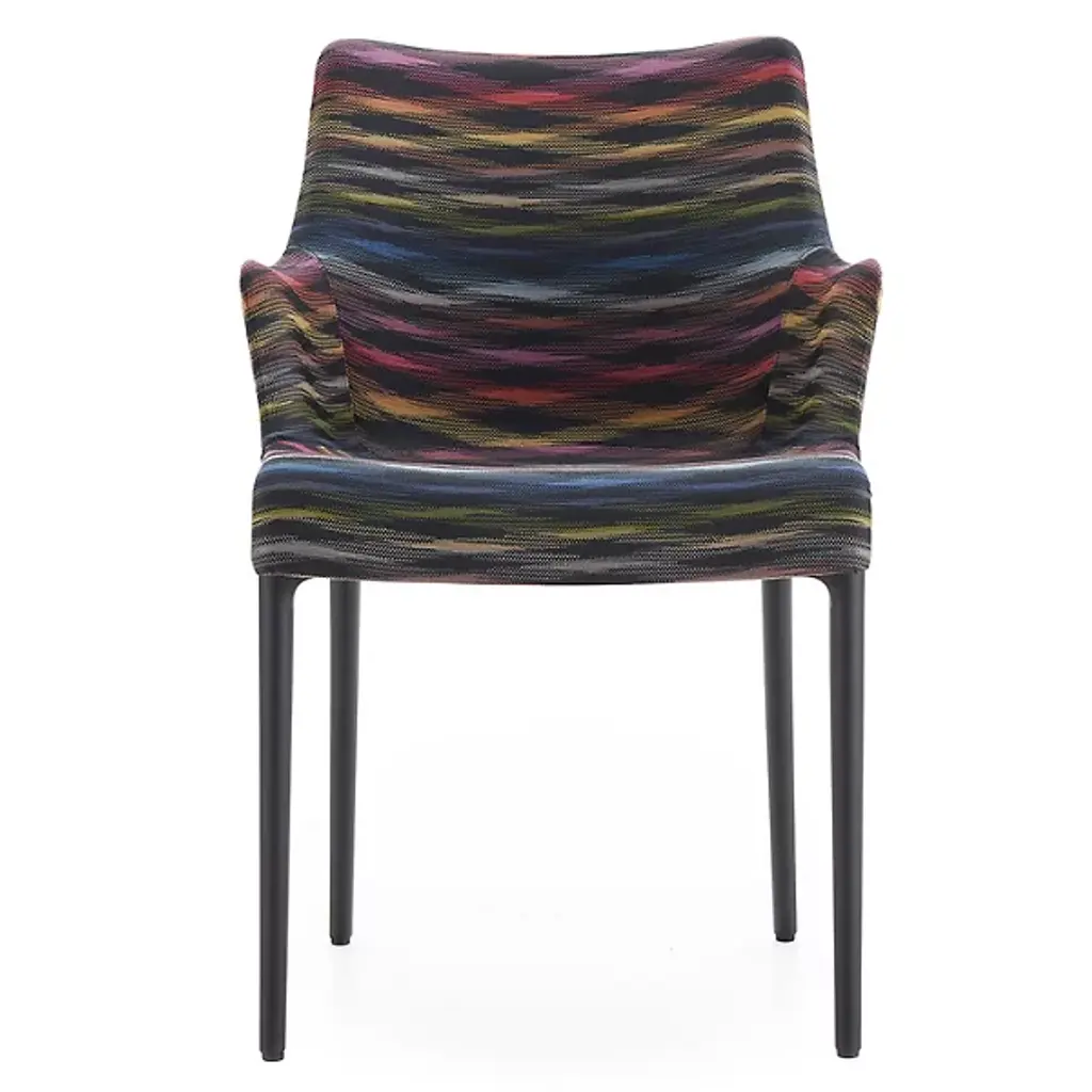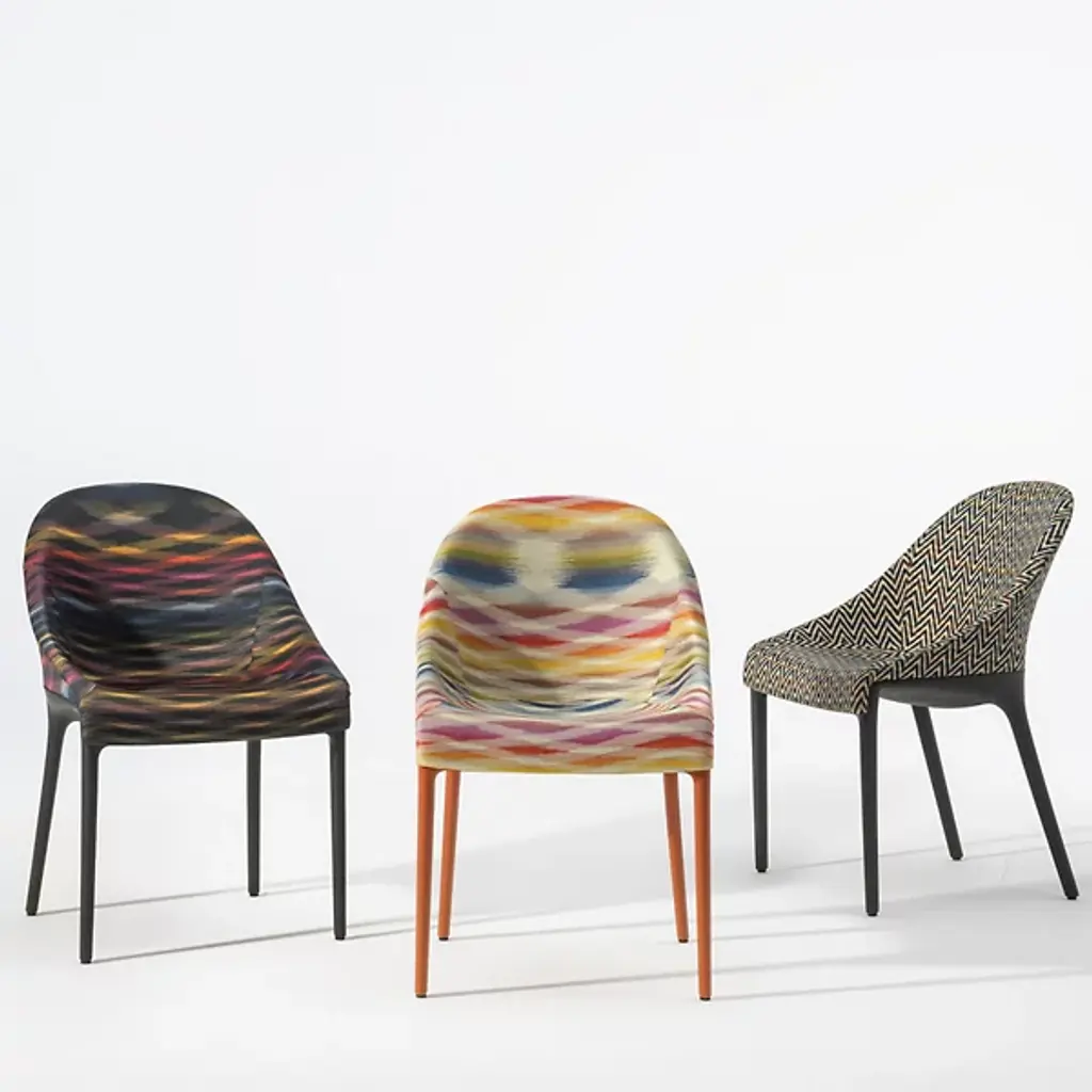 The Eleganza Ela Missoni Arm Chair from Kartell marries fashion innovation with environmental responsibility. This Philippe Starck design uses post-industrial recycled thermoplastic technopolymer created from Illy coffee pods for its frame. The seat features Missoni's famous geometric patterns adapted for furniture, upholstered in 100% cotton over polyurethane padding. This chair represents a groundbreaking partnership between Kartell and Illy, with nearly two years of development needed to achieve the quality standards necessary to turn coffee pod waste into furniture that’s perfect for dining rooms, home offices, or as accent seating.