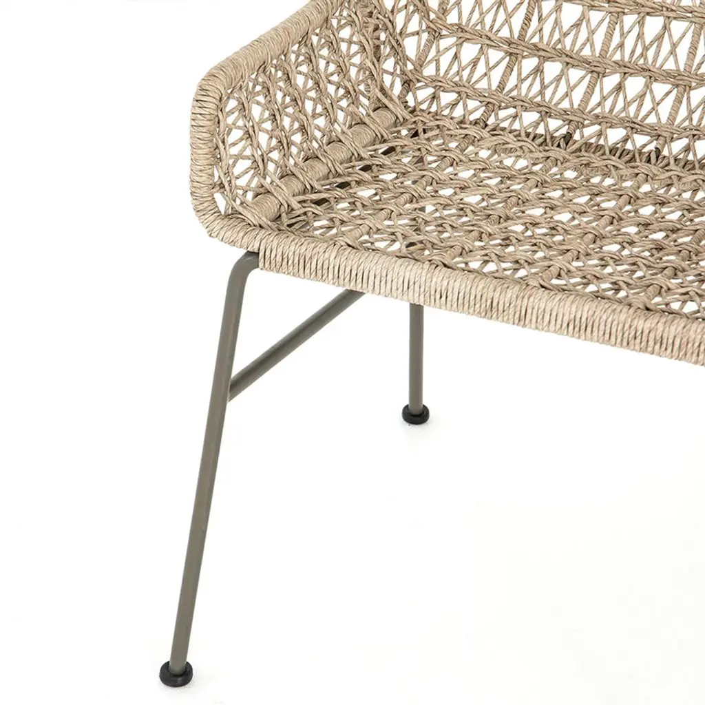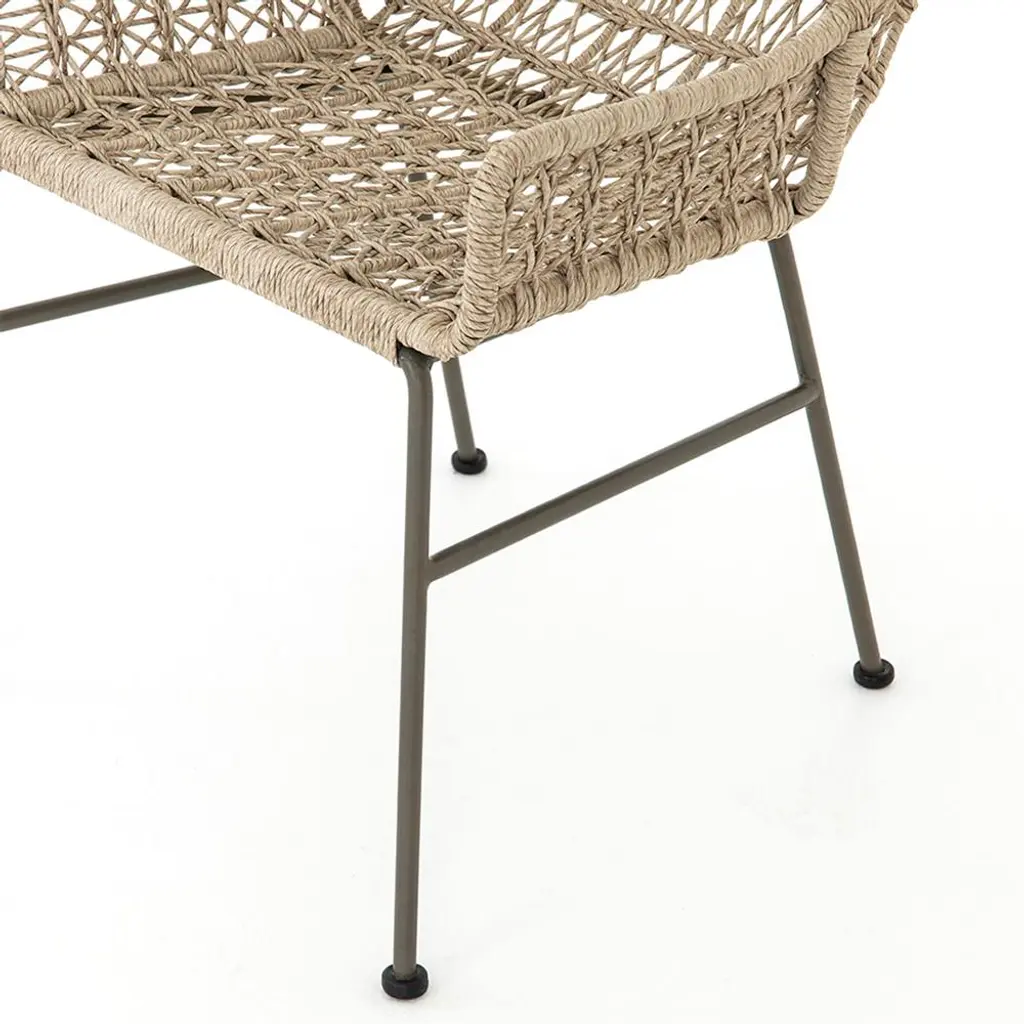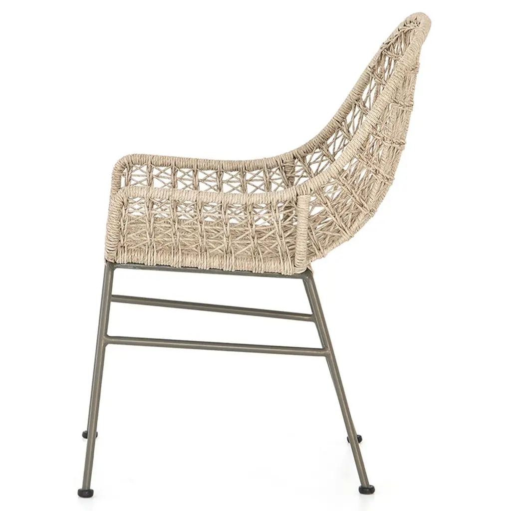 Elena Coastal Beach Beige Wicker Iron Frame Outdoor Dining Chair