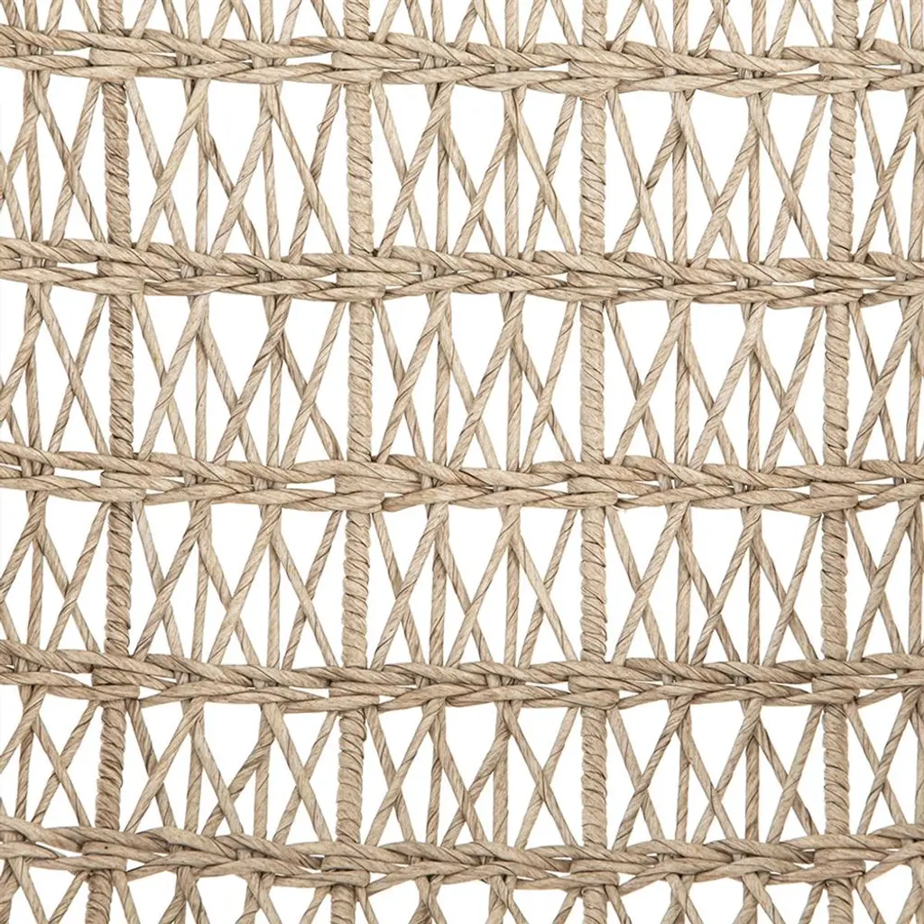 Clean lines meet with intricate woven details on the lively Elena dining chair. Set atop a grey bronze iron base, low arms and a gently sloped back create a comfortable seat. Finished in vintage white, an all-weather wicker weave offers durability both indoors and outdoors.