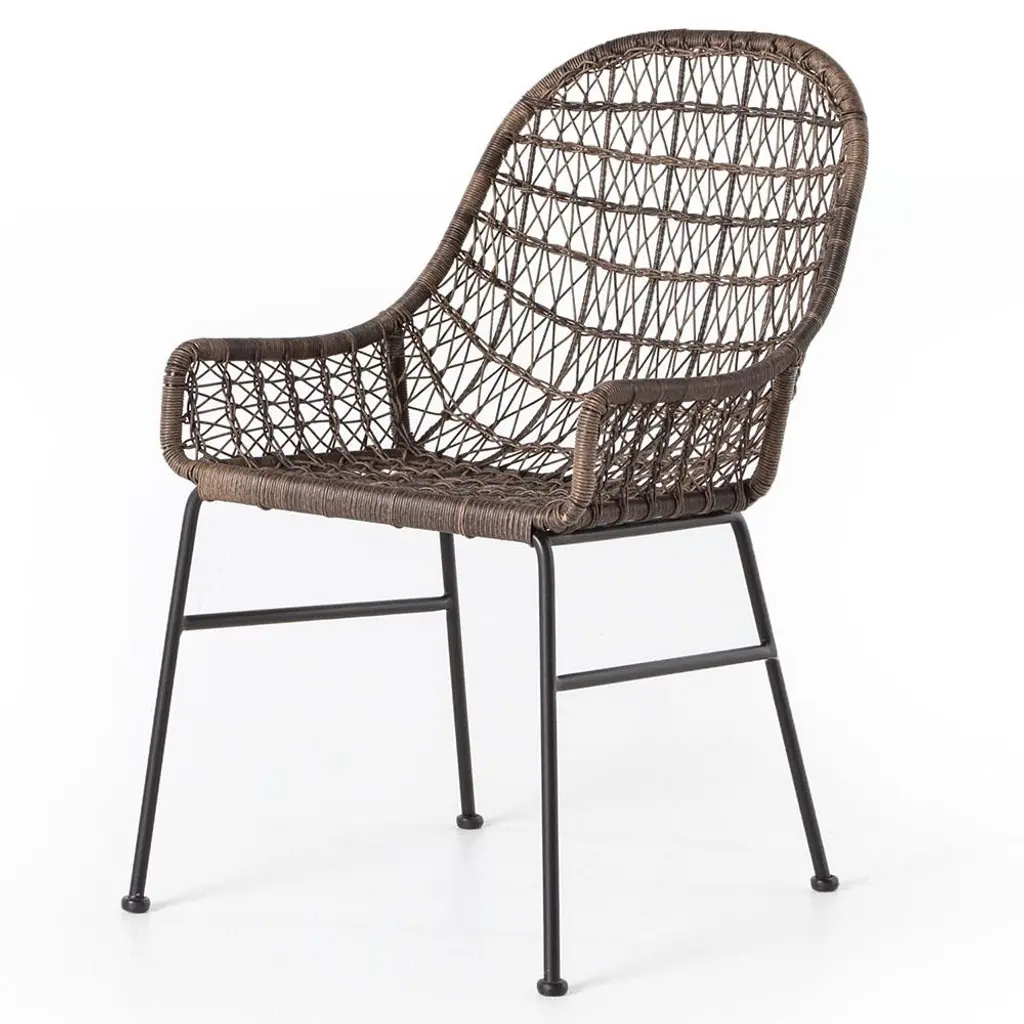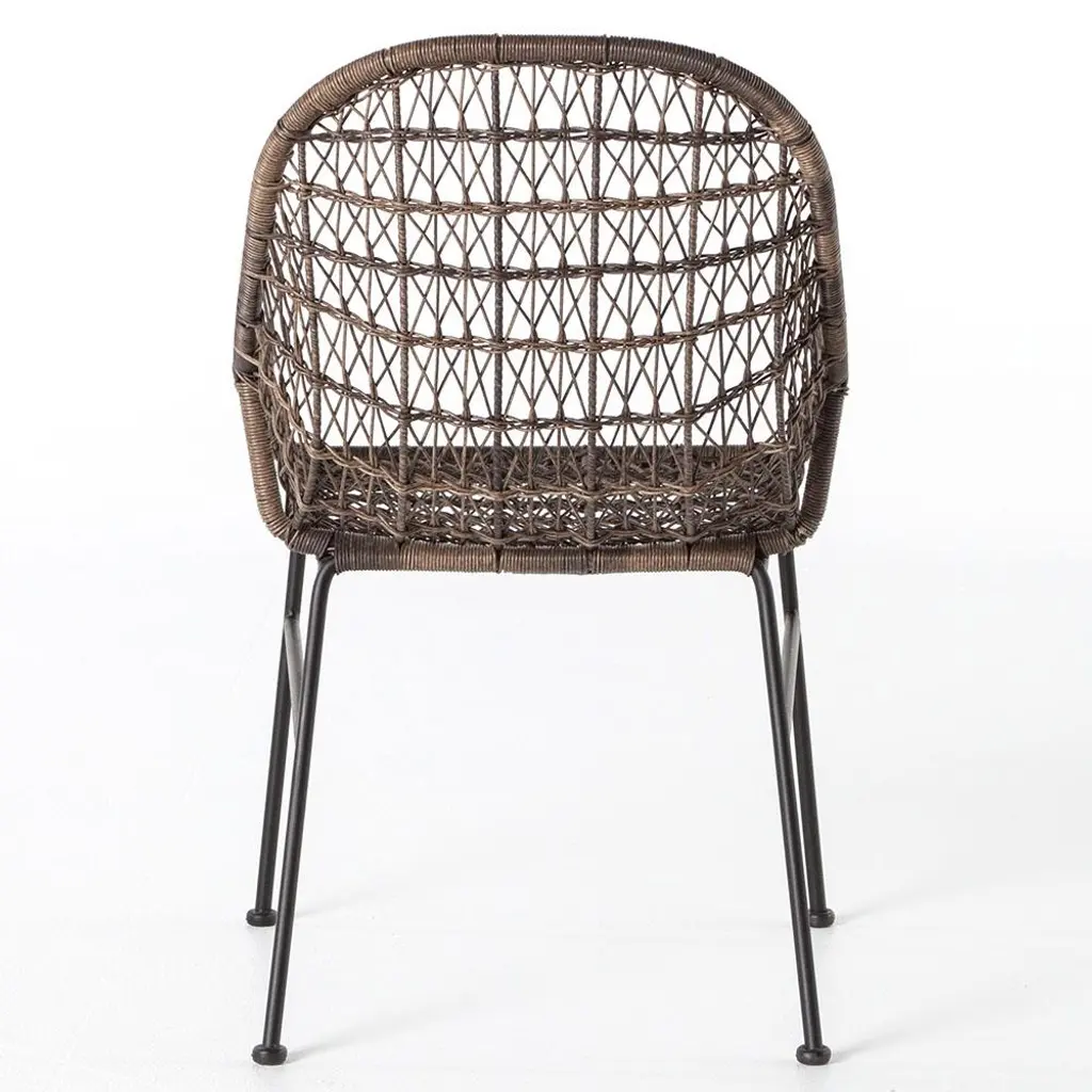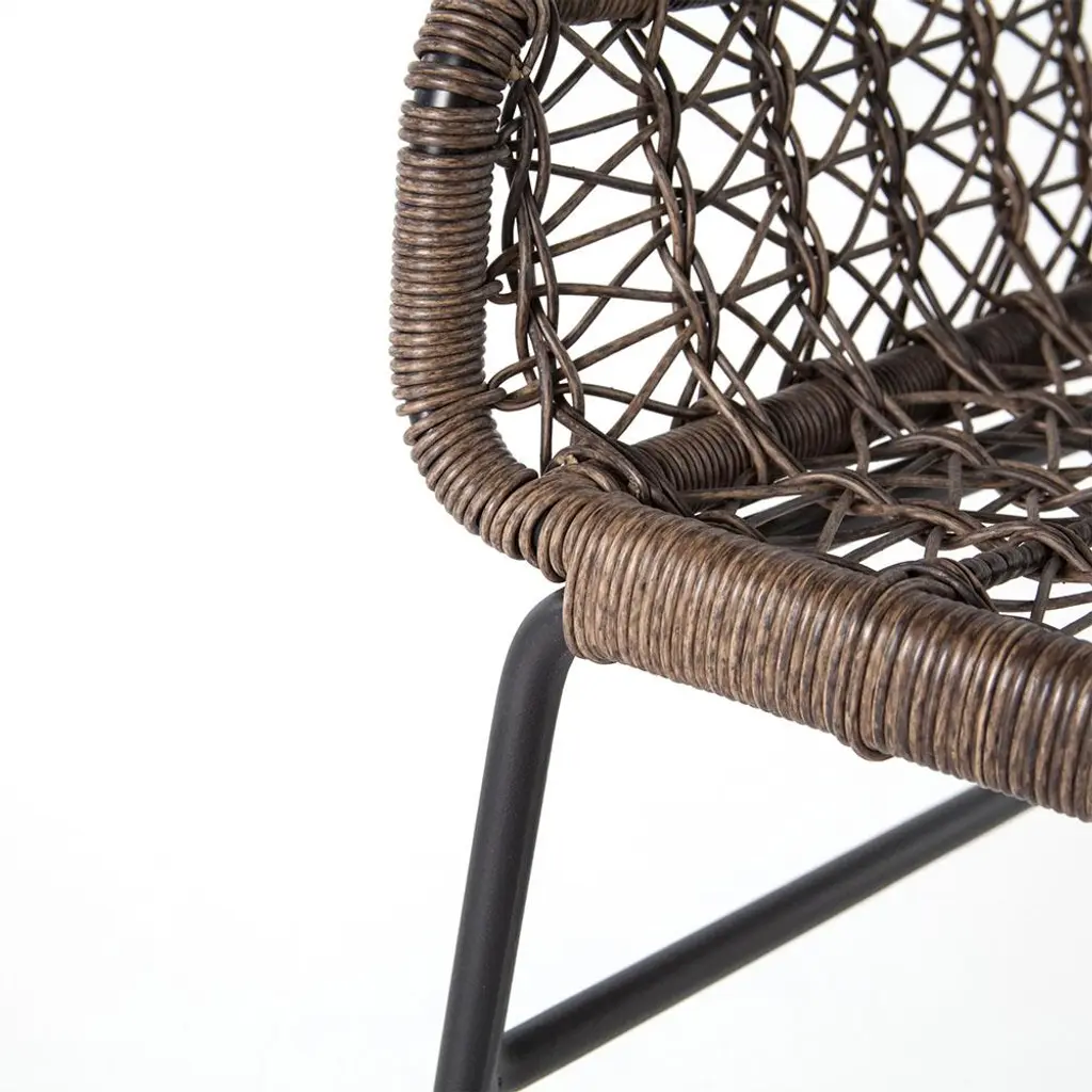 Elena Coastal Beach Dark Brown Wicker Iron Frame Outdoor Dining Chair