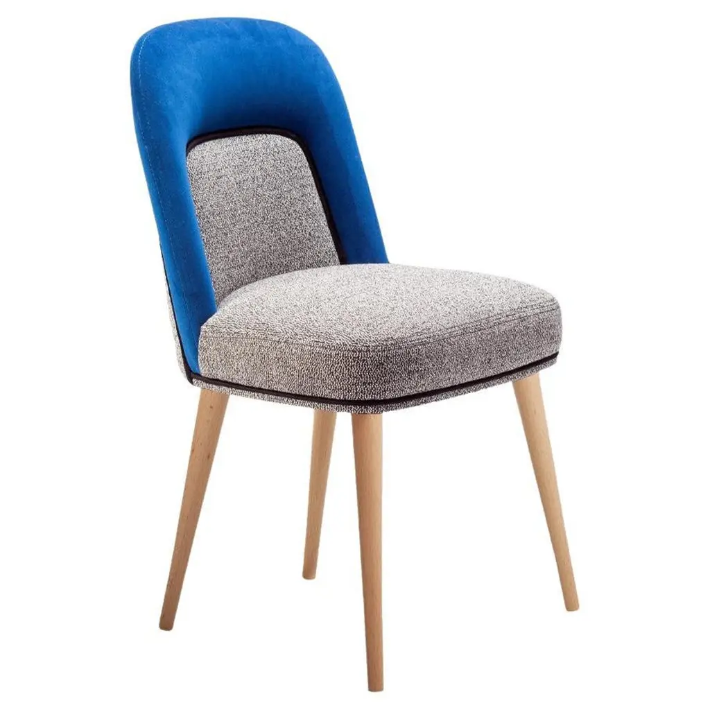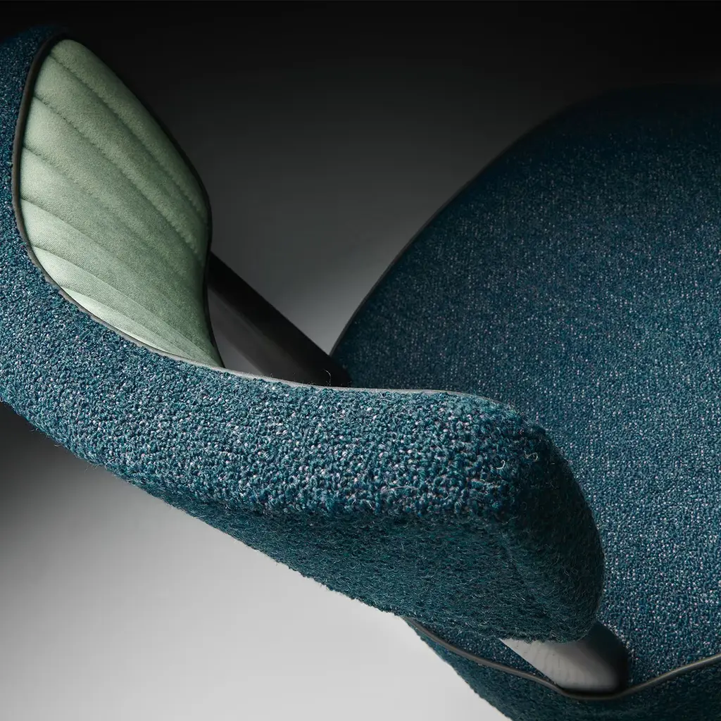 A distinctive design to elevate the look of a dining table with refinement and sophistication, this chair combines prestigious materials and sober yet captivating shades. The backrest, enriched with ribbed stitching, rises with delicate austerity over the comfortable polyurethane-padded seat, following in a perfect line with the ash wood and polished gold metal legs. The structure is in solid beechwood, and the covers are non-removable.