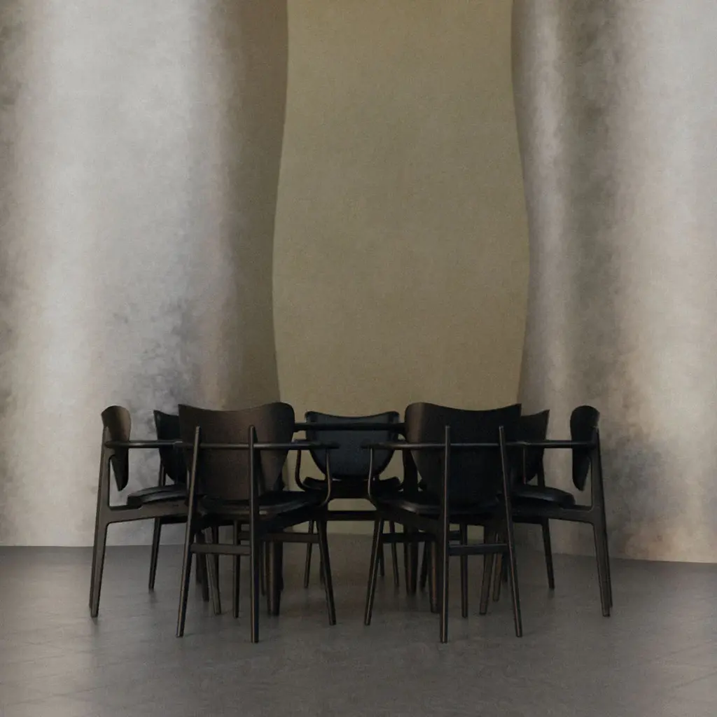 The Elephant Chair is a dining chair version of the popular Elephant Lounge Chair. To add even more comfort we are introducing an Elephant Chair with armrest. The armrest is made of bent oak and provides firm support. The design is a new and modern touch to traditional Scandinavian dining chairs and the armrest with its strong lines gives an interesting contrast to the soft shapes of the Elephant. The result is a chair that can stand stylish on its own as a side chair or in a set of many around a dining table.