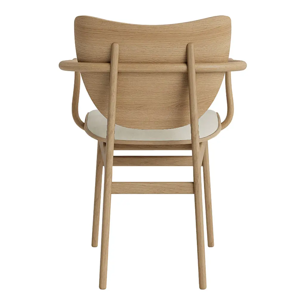The Elephant Chair is a dining chair version of the popular Elephant Lounge Chair. To add even more comfort we are introducing an Elephant Chair with armrest. The armrest is made of bent oak and provides firm support. The design is a new and modern touch to traditional Scandinavian dining chairs and the armrest with its strong lines gives an interesting contrast to the soft shapes of the Elephant. The result is a chair that can stand stylish on its own as a side chair or in a set of many around a dining table.