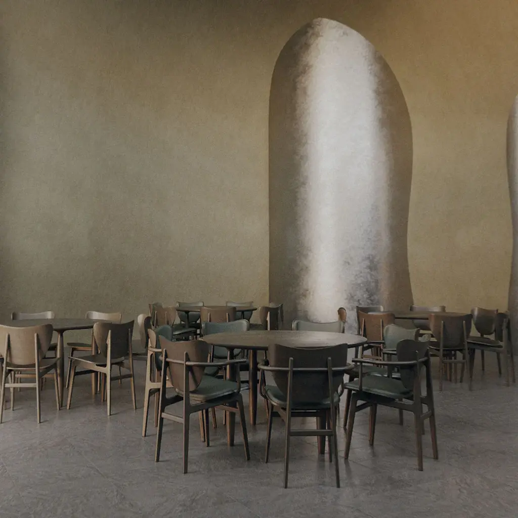 The Elephant Chair is a dining chair version of the popular Elephant Lounge Chair. To add even more comfort we are introducing an Elephant Chair with armrest. The armrest is made of bent oak and provides firm support. The design is a new and modern touch to traditional Scandinavian dining chairs and the armrest with its strong lines gives an interesting contrast to the soft shapes of the Elephant. The result is a chair that can stand stylish on its own as a side chair or in a set of many around a dining table.