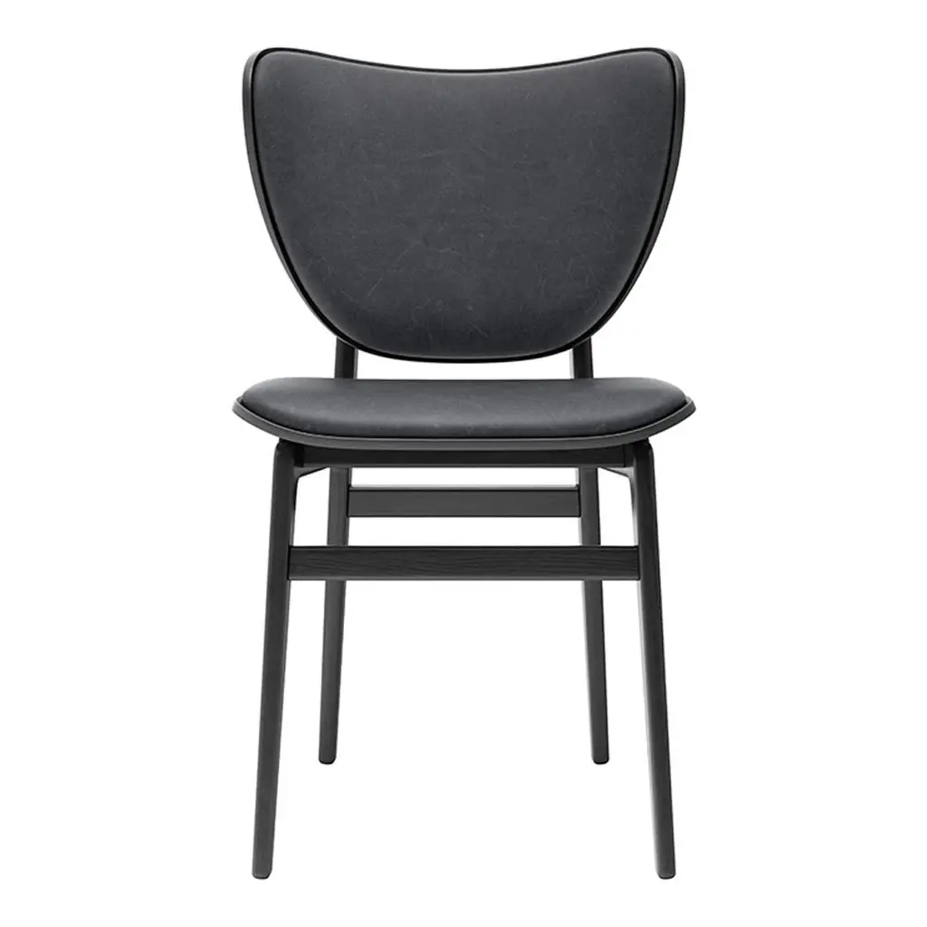 The Elephant Dining Chair is a dining chair version of the popular Elephant Lounge Chair. The legs are shared with the proven NY11 Dining Chair while the seat and back are pressed in the same soft curve as the Elephant Lounge Chair. The result is a light and elegant dining chair where the Elephant ear shaped back gently curves around the body. Elephant Dining is produced with solid oak legs, with back and seat in laminated oak veneer. The seat and the back are upholstered in leather and textile of highest quality, and the refined 25 mm foam blend provides superior comfort. The upholstery gives the chair a solid look, which is contrasted by the slim contour of the veneer edge. "Elegant, simple but sturdy without being clumsy".