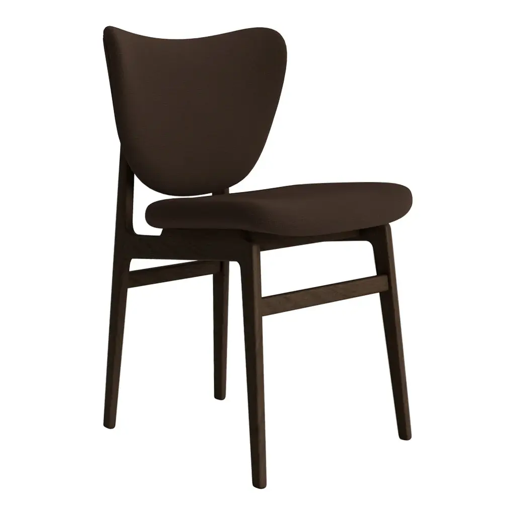 The Elephant Dining Chair is a dining chair version of the popular Elephant Lounge Chair. The legs are shared with the proven NY11 Dining Chair while the seat and back are pressed in the same soft curve as the Elephant Lounge Chair. The result is a light and elegant dining chair where the Elephant ear shaped back gently curves around the body. Elephant Dining is produced with solid oak legs, with back and seat in laminated oak veneer. The seat and the back are upholstered in leather and textile of highest quality, and the refined 25 mm foam blend provides superior comfort. The upholstery gives the chair a solid look, which is contrasted by the slim contour of the veneer edge. "Elegant, simple but sturdy without being clumsy".